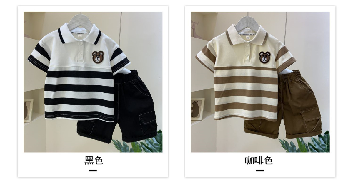 소년 여름 폴로 셔츠 세트 2024 새로운 세련된 어린이 반팔 옷 아기 인터넷 인기 유행 투피스 세트스토어 가기