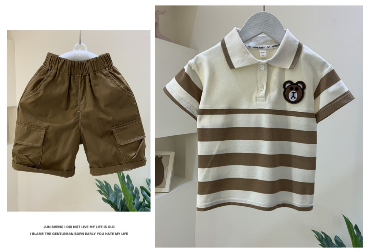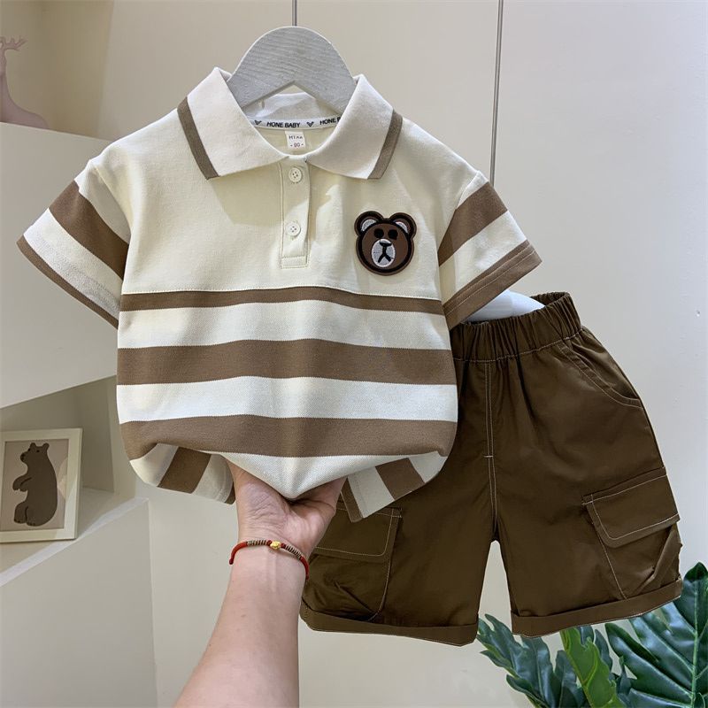 소년 여름 폴로 셔츠 세트 2024 새로운 세련된 어린이 반팔 옷 아기 인터넷 인기 유행 투피스 세트