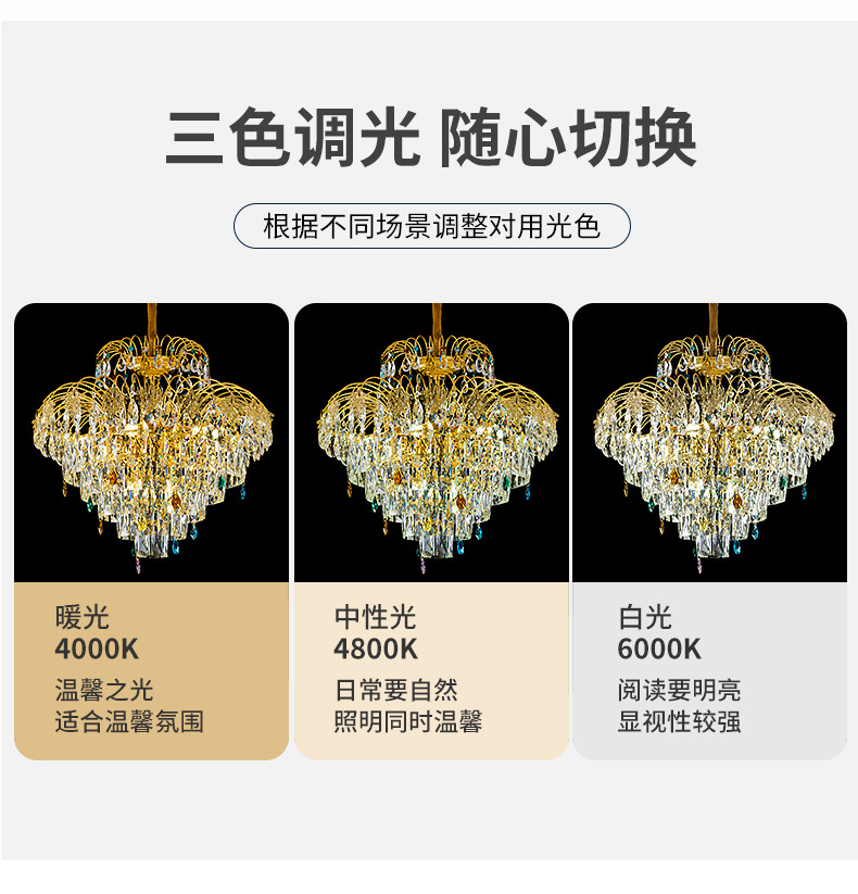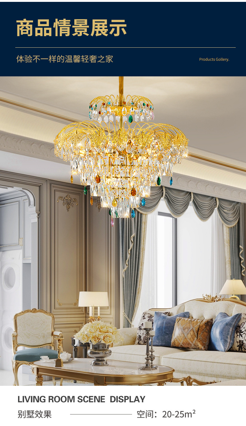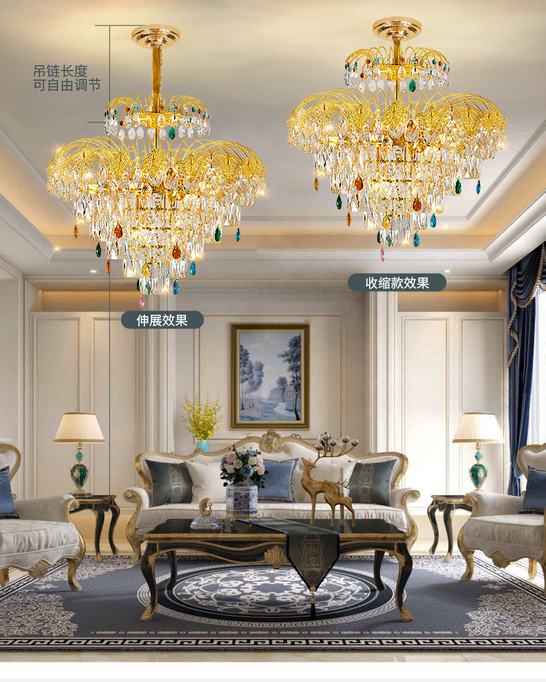 라이트 럭셔리 크리스탈 샹들리에 거실 램프 프랑스 모던 레트로 아메리칸 스타일 고급 레스토랑 침실 새로운 중산 램프