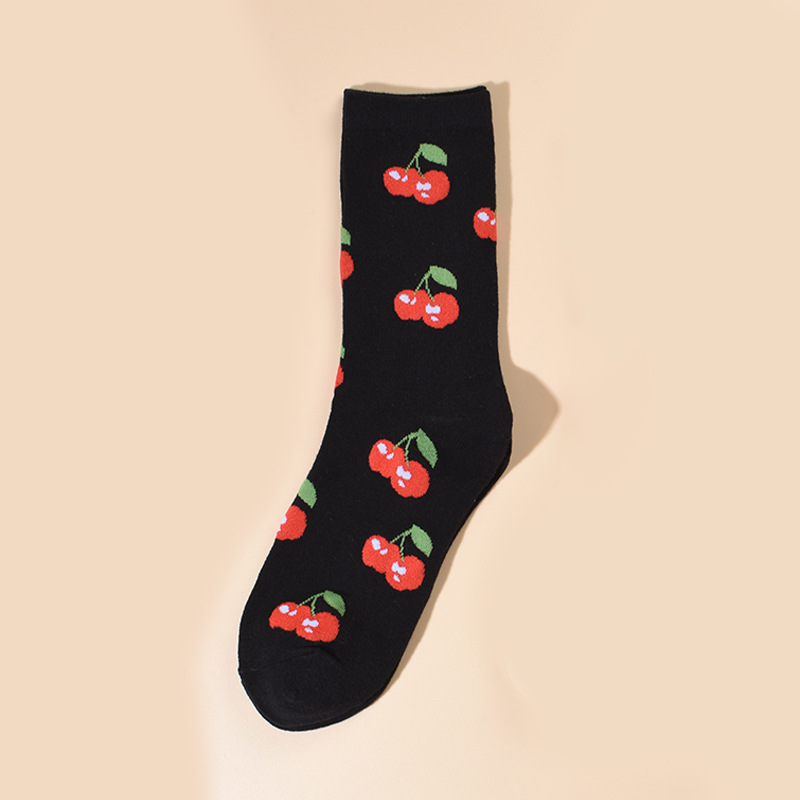 아마존의 새로운 여성용 종아리 중간 양말 유럽과 미국의 ins 스타일 과일 가을, 겨울 인터넷 연예인 트렌드 양말 면 제조 업체 도매스토어 가기