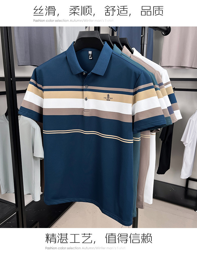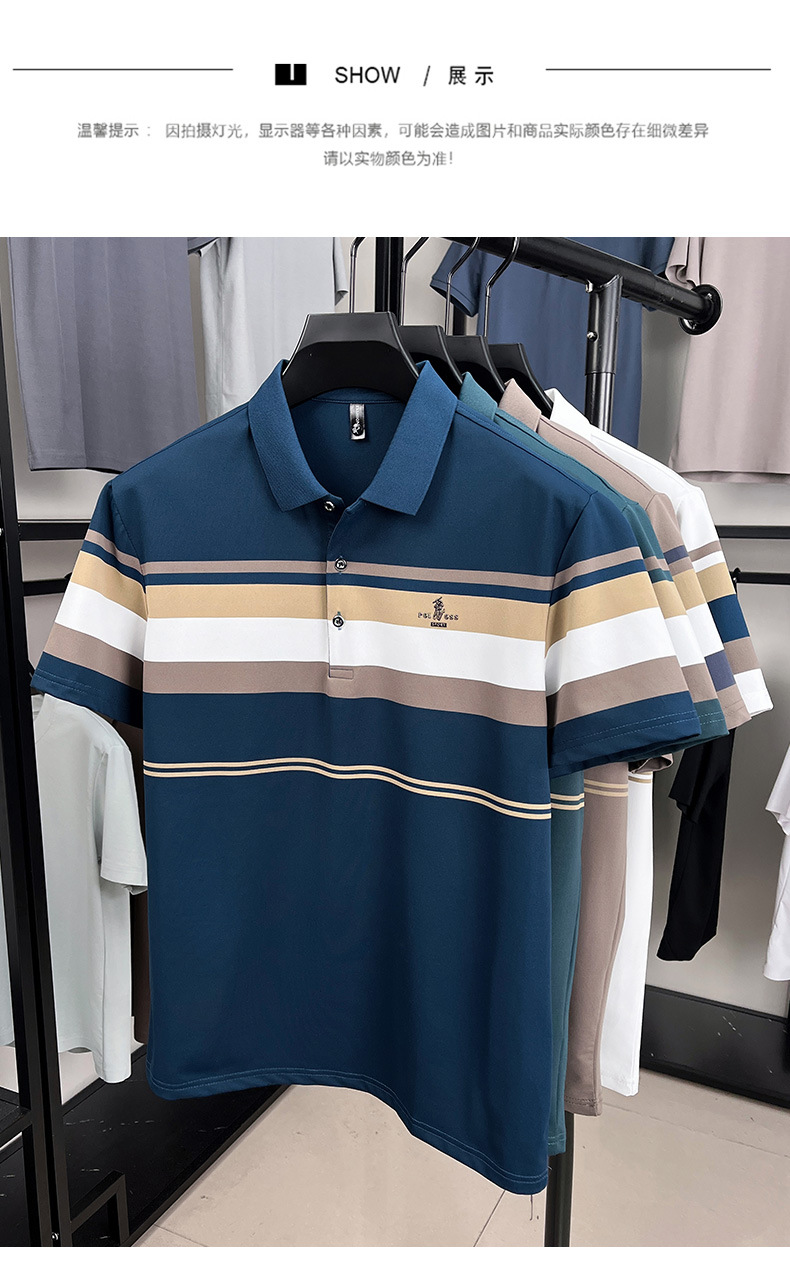 여름 반팔 티셔츠 남성용 폴로 셔츠 루즈 라펠 반팔 탑 아이스 실크 비즈니스 캐주얼 바닥 셔츠스토어 가기