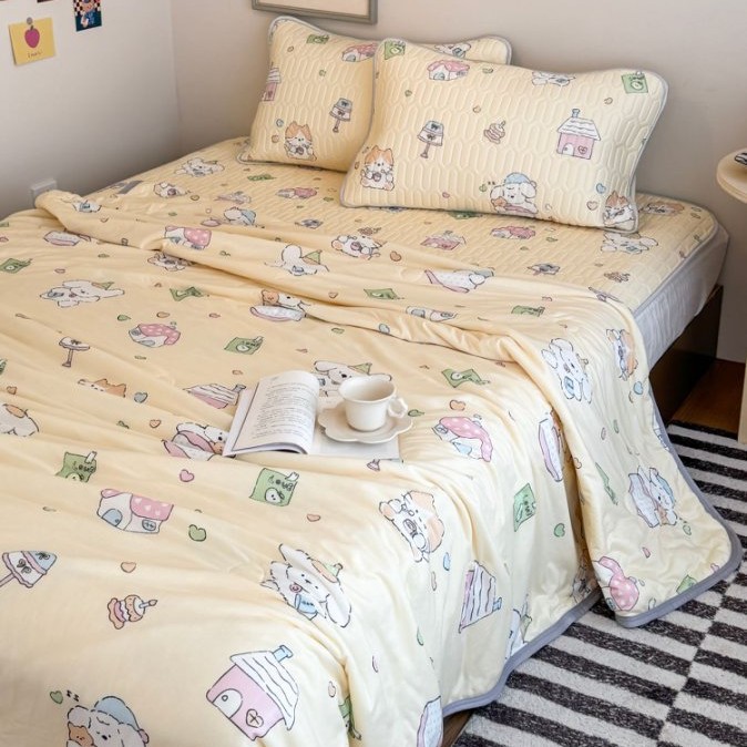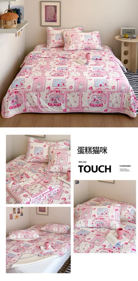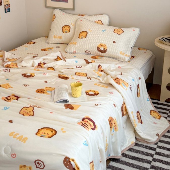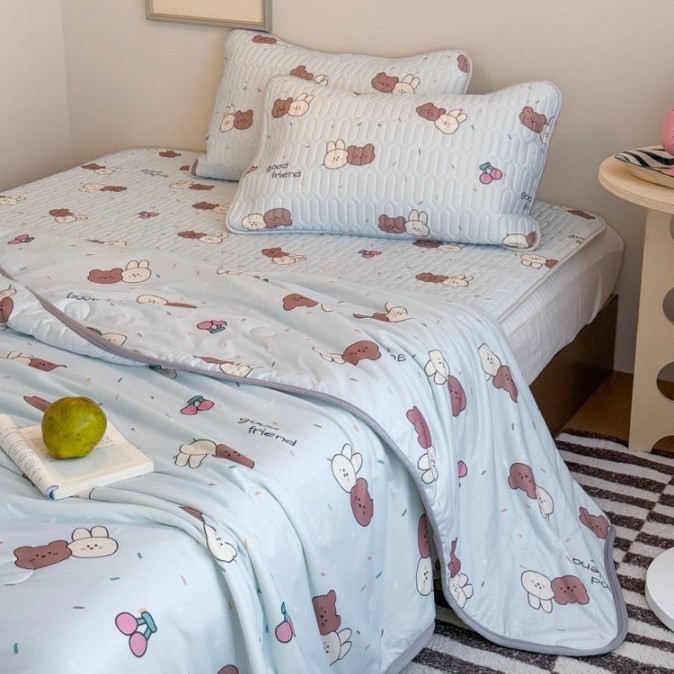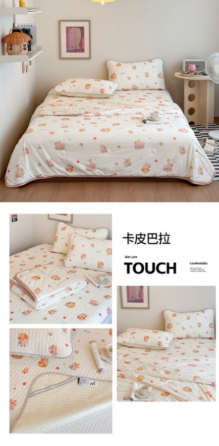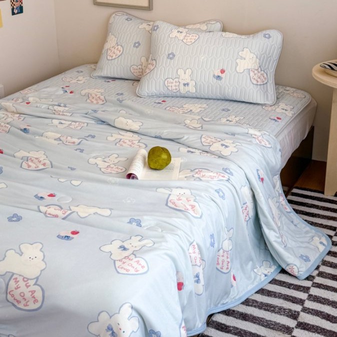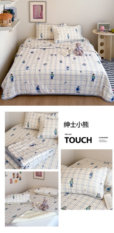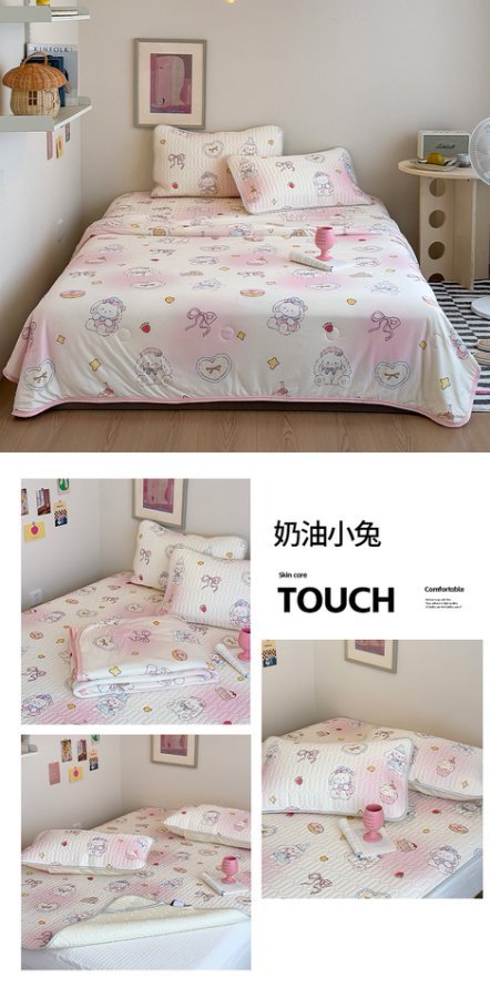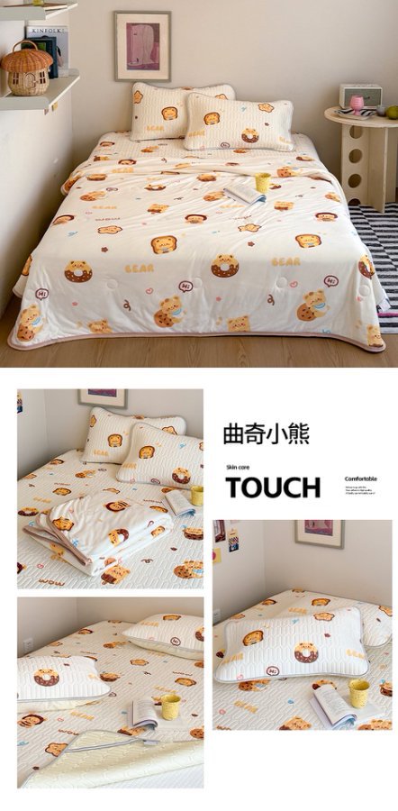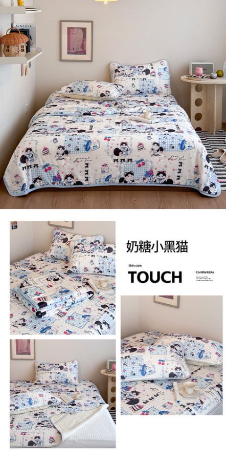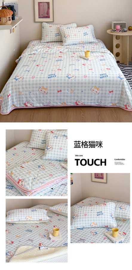 라텍스 매트리스 3종 세트 여름용 만화 니트 면 여름 이불 4종 세트 세탁기 사용 가능 매트리스 에어컨 이불