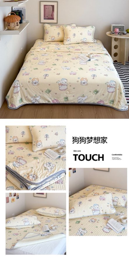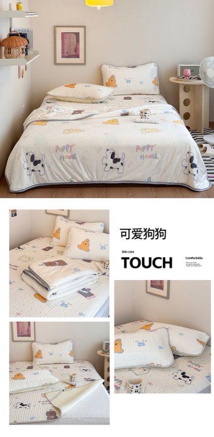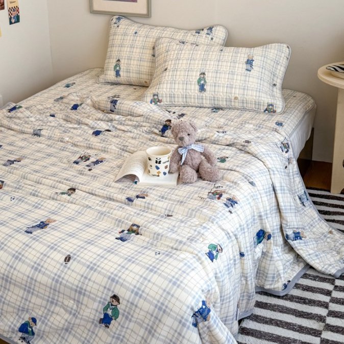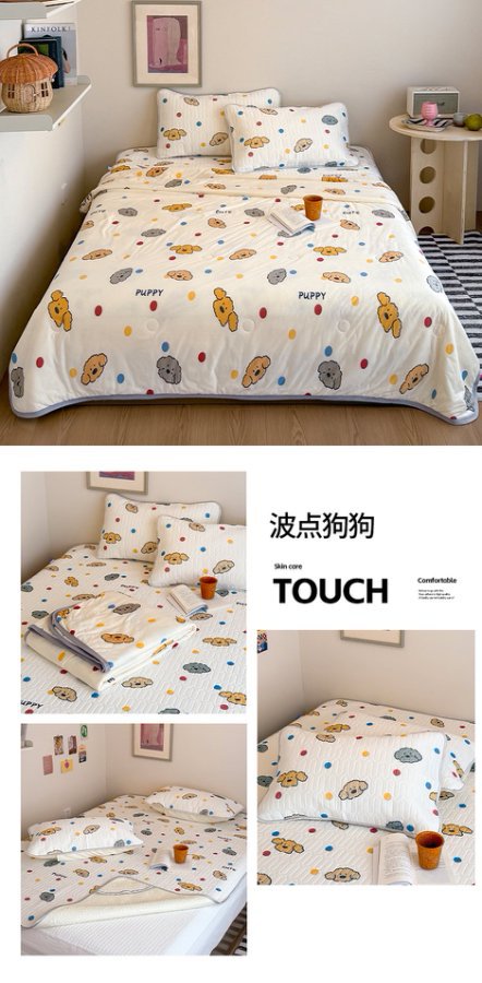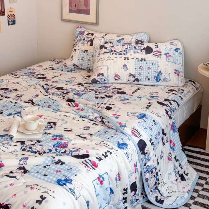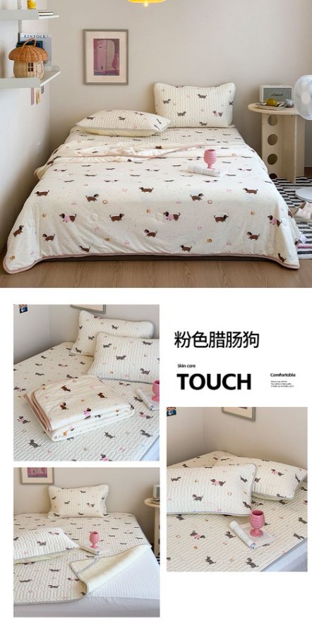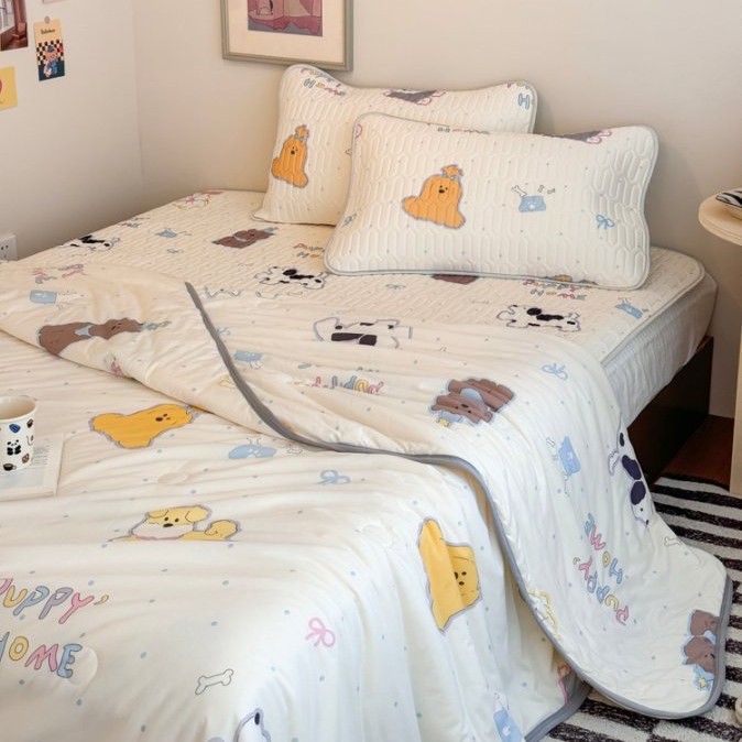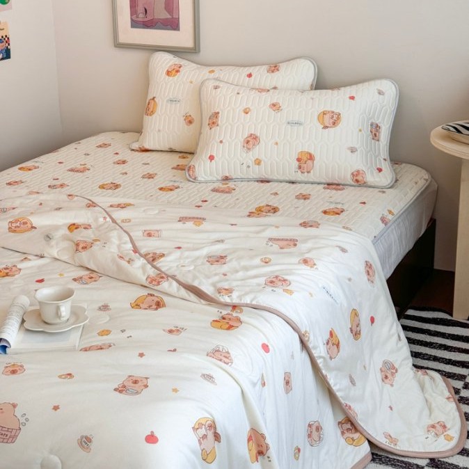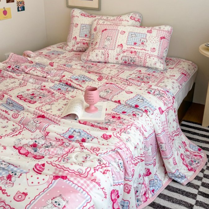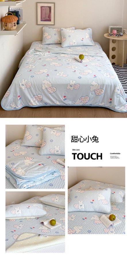 라텍스 매트리스 3종 세트 여름용 만화 니트 면 여름 이불 4종 세트 세탁기 사용 가능 매트리스 에어컨 이불