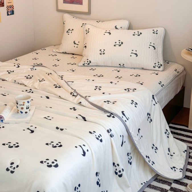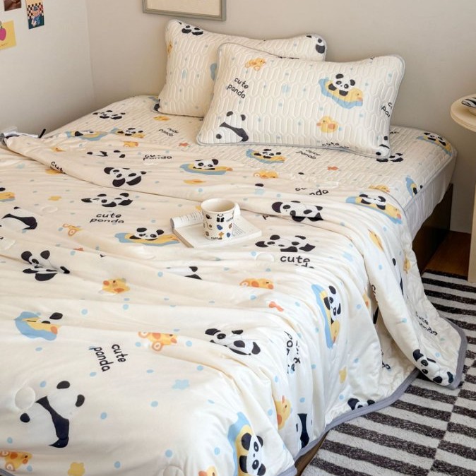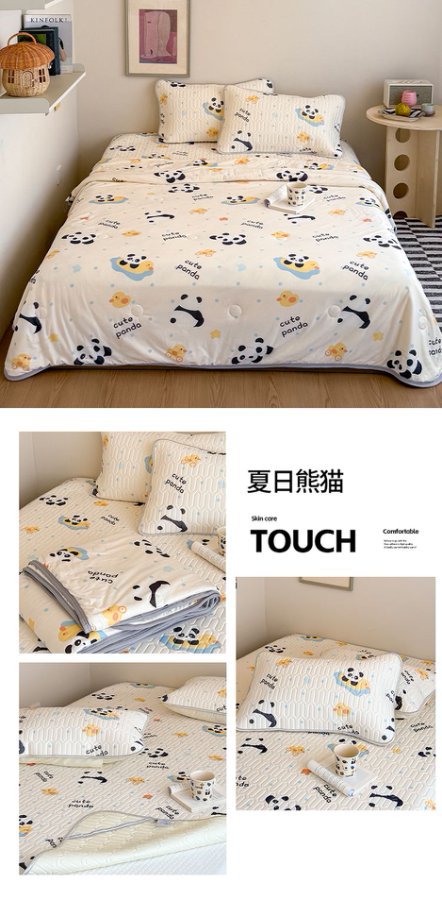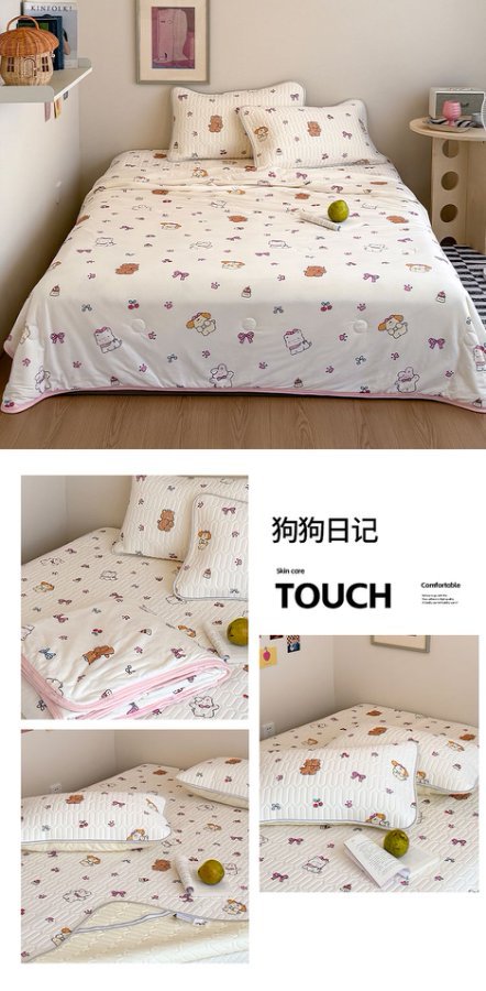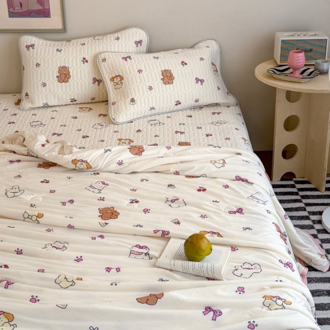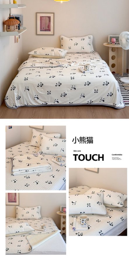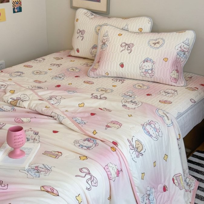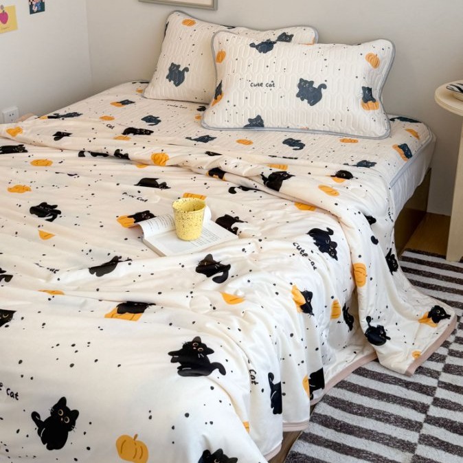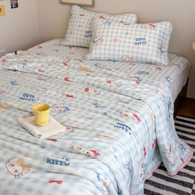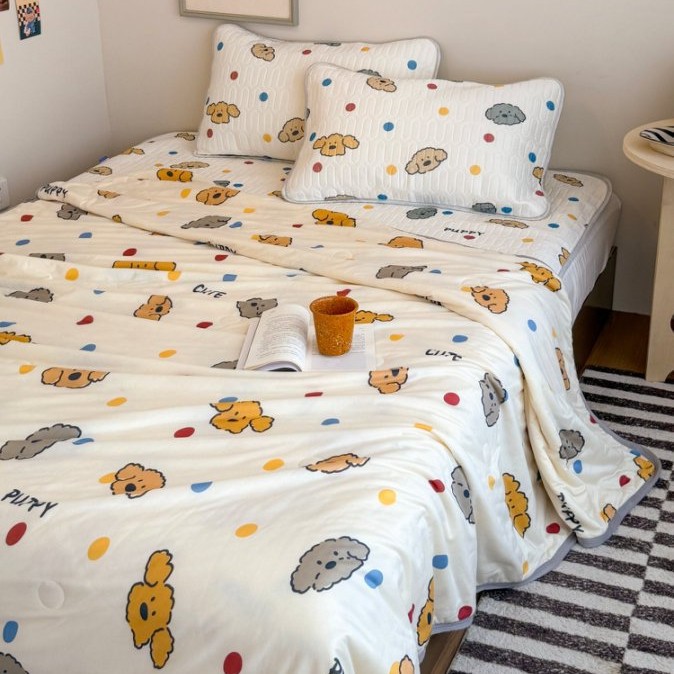 라텍스 매트리스 3종 세트 여름용 만화 니트 면 여름 이불 4종 세트 세탁기 사용 가능 매트리스 에어컨 이불