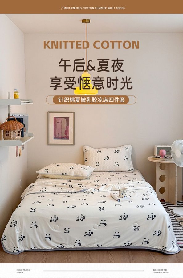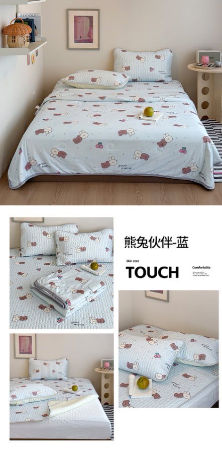 라텍스 매트리스 3종 세트 여름용 만화 니트 면 여름 이불 4종 세트 세탁기 사용 가능 매트리스 에어컨 이불스토어 가기