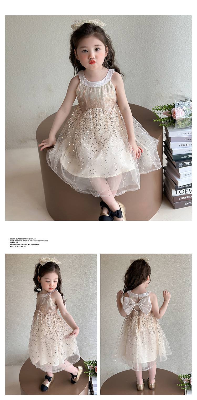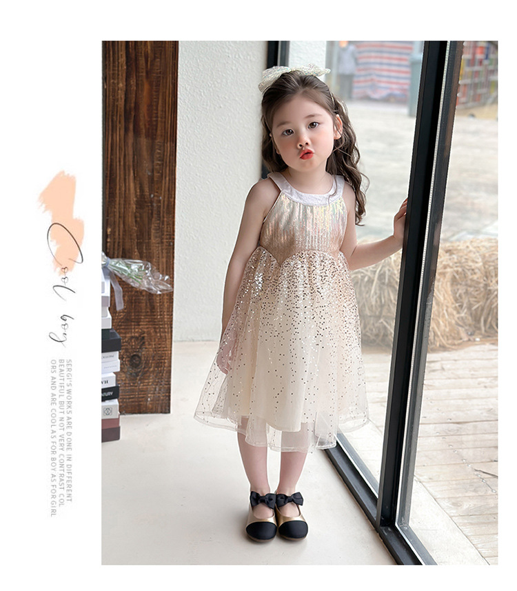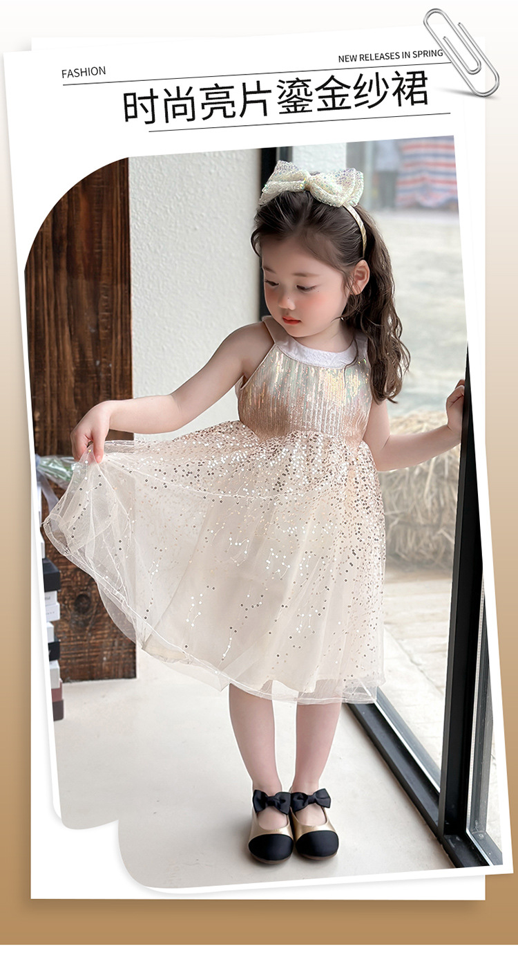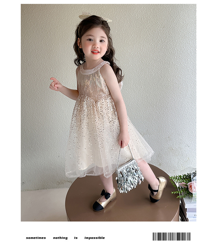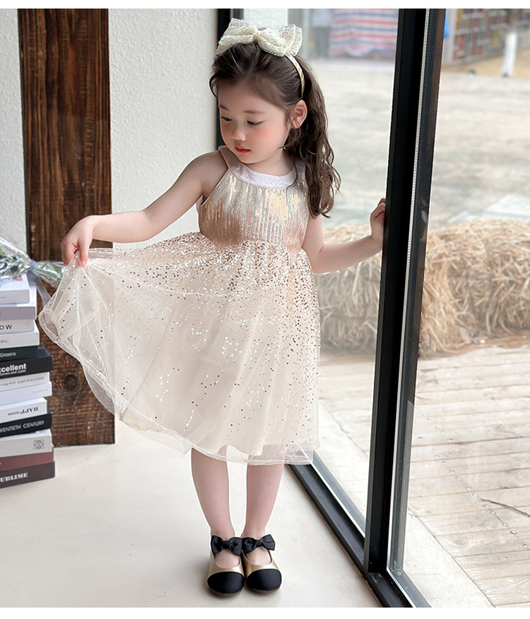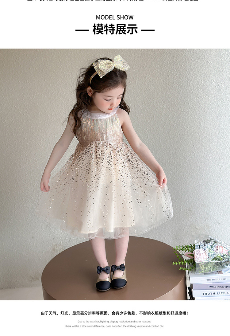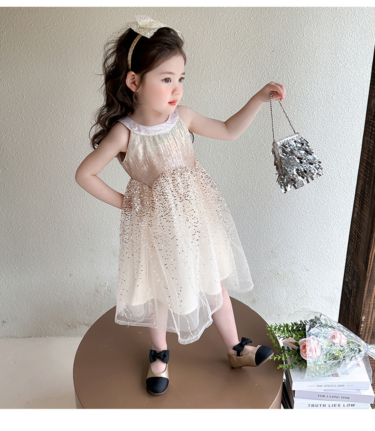 소녀 다채로운 스퀸 메쉬 원피스 2025 여름 새로운 패션 소녀 세련된 공주 원피스 공연 옷스토어 가기