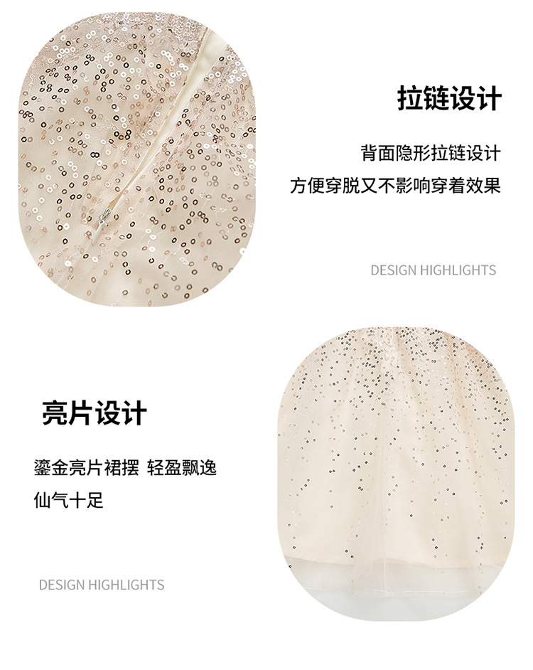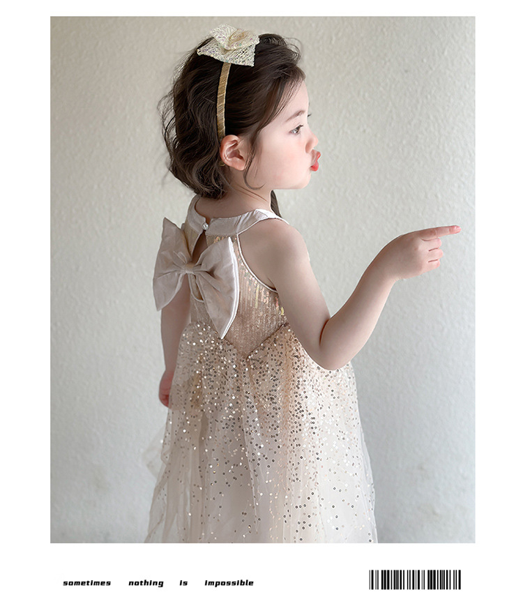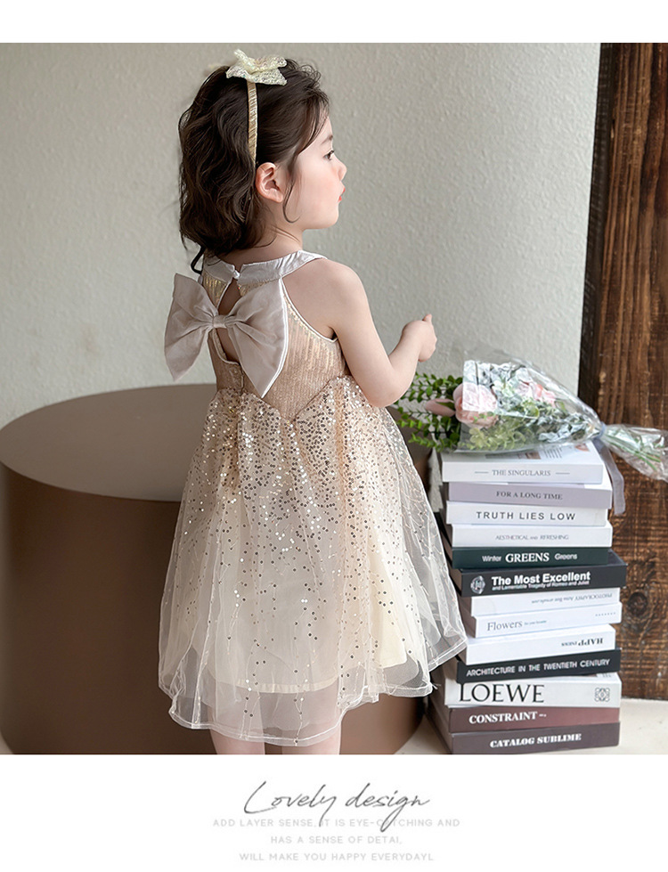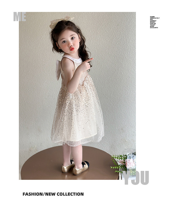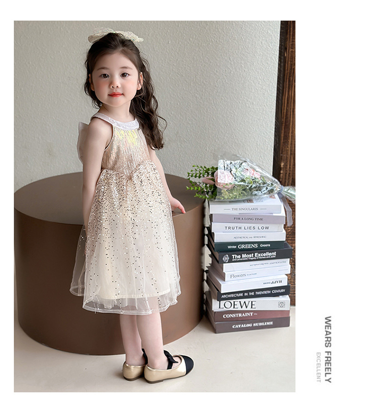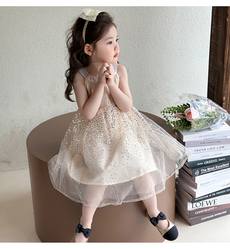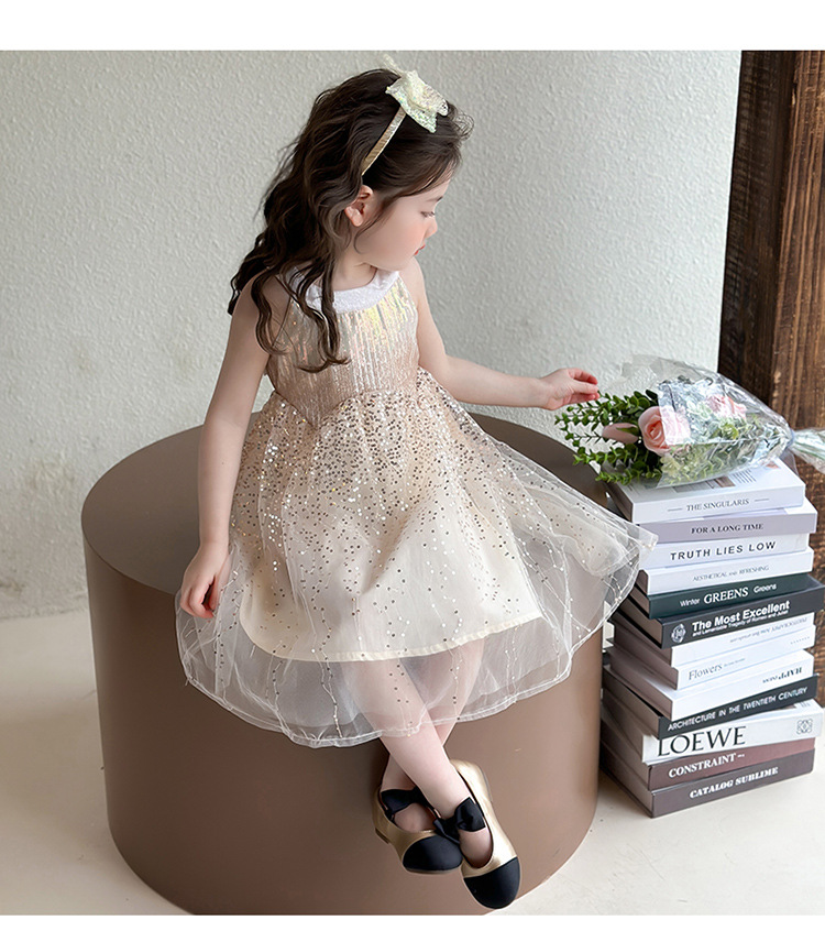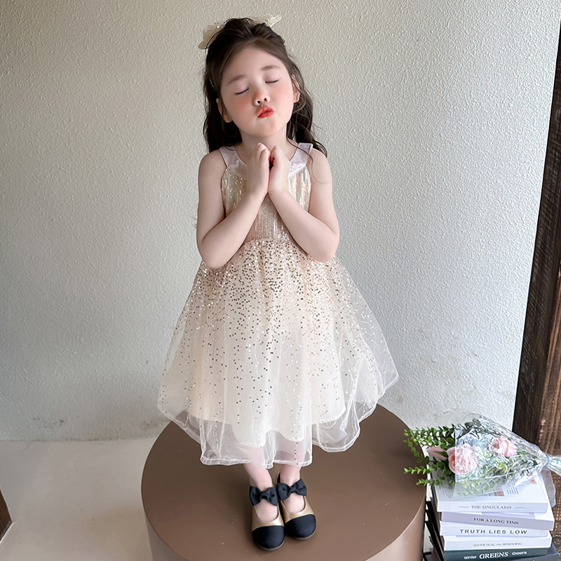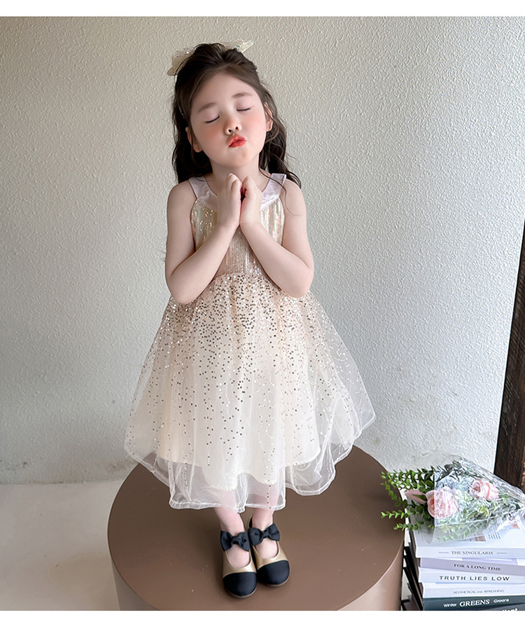 소녀 다채로운 스퀸 메쉬 원피스 2025 여름 새로운 패션 소녀 세련된 공주 원피스 공연 옷스토어 가기