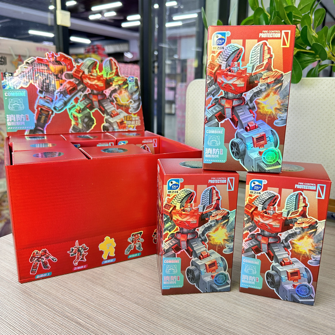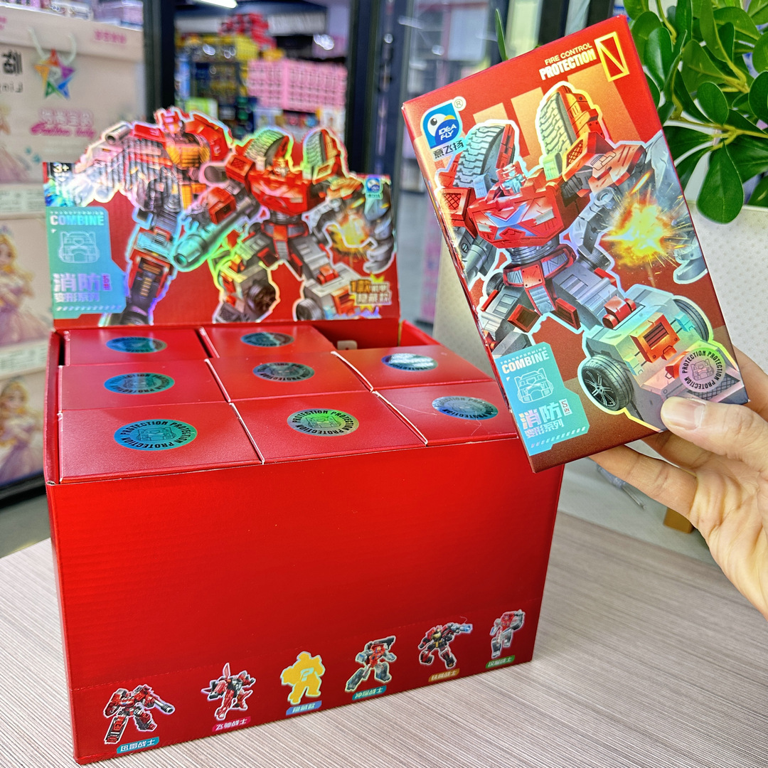 9 팩 시뮬레이션 화재 메카 킹 콩 블라인드 박스 소년 어린이 장난감 선물 공원 야시장 계단