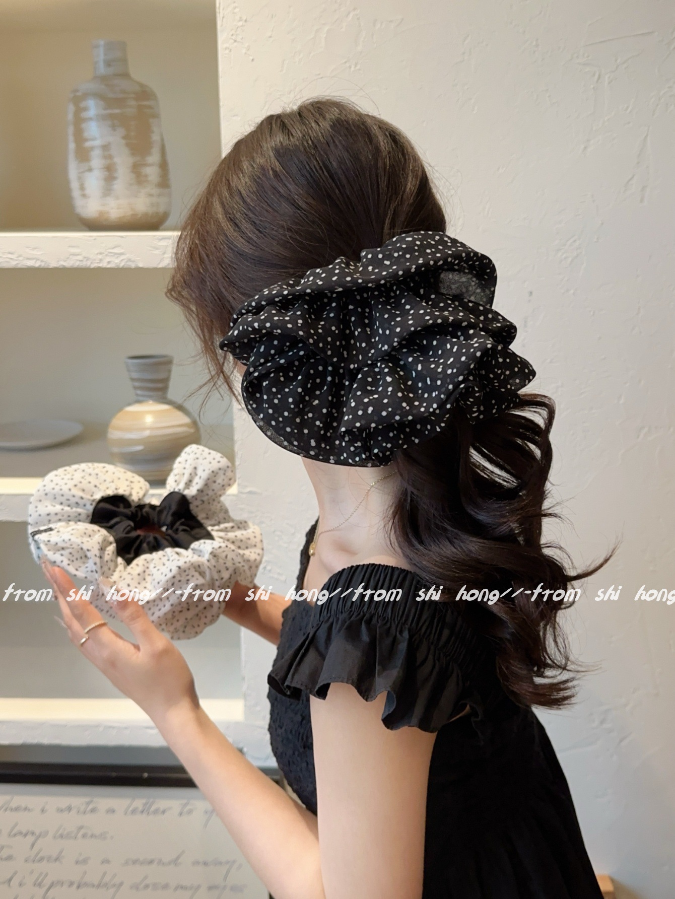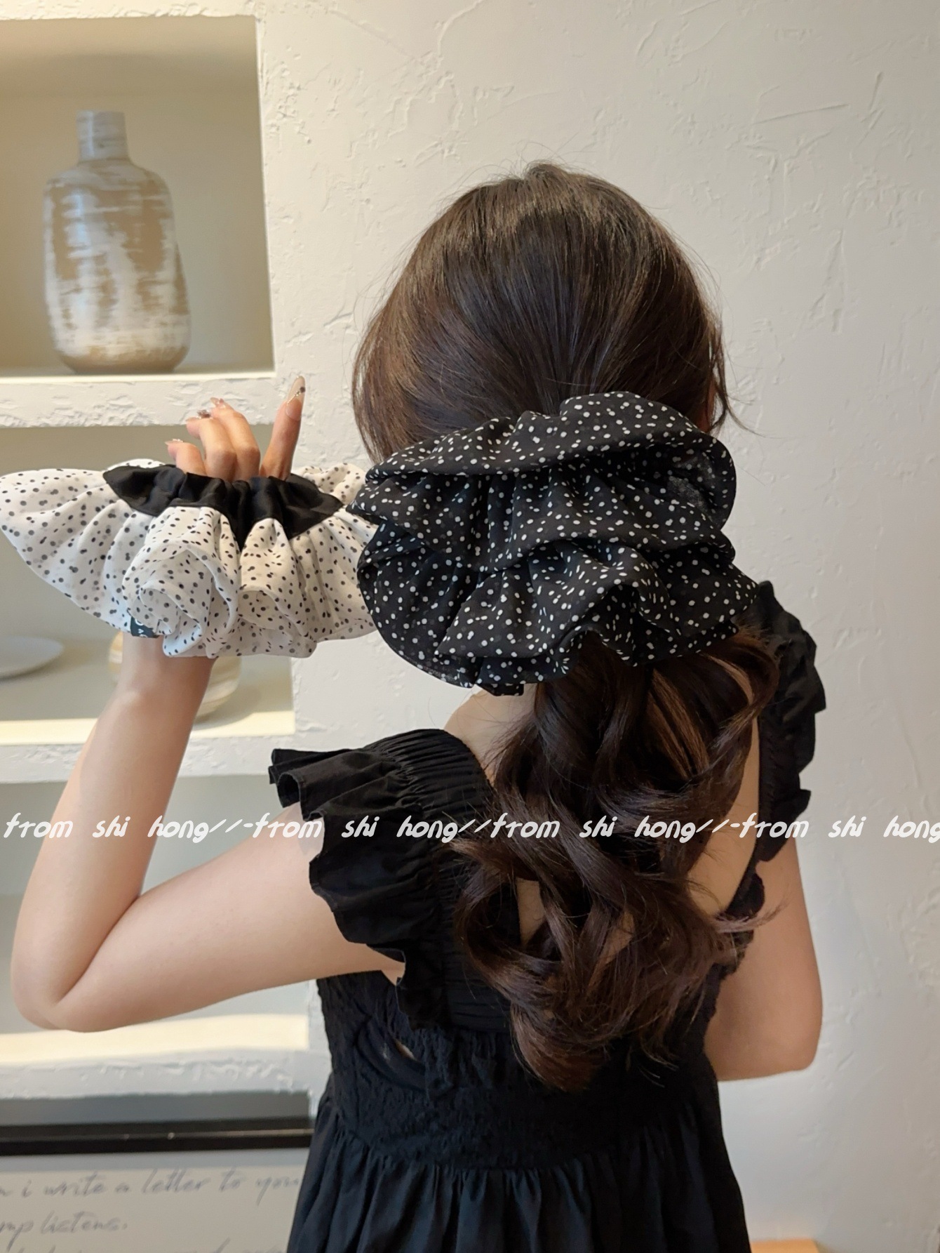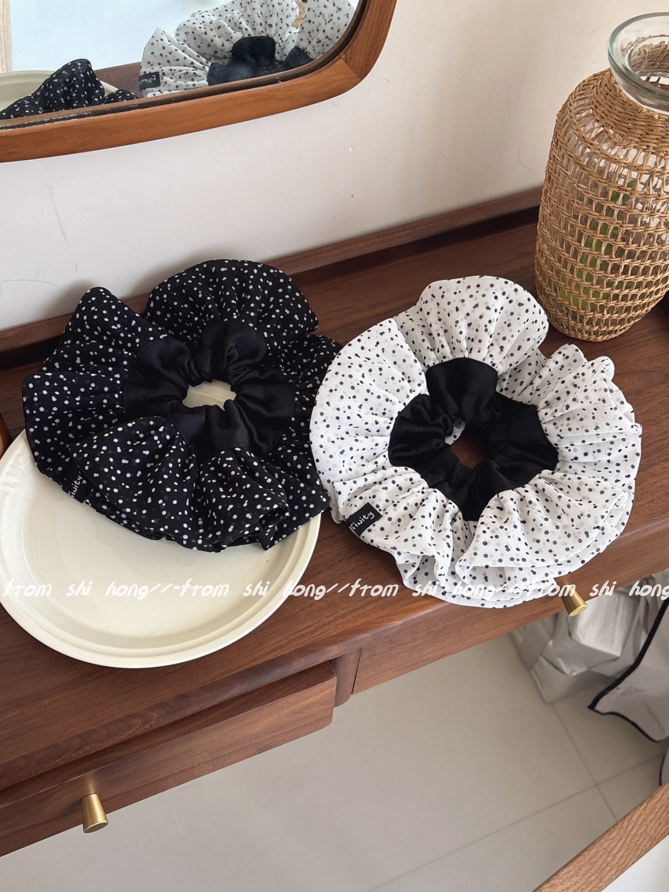 잉크 웨이브 도트 라이트 원사 패브릭 텍스처 레트로 대형 그릇 링 간단한 올 매치 헤어 액세서리 헤어 로프 헤어 로프 인터넷 유명 헤어 액세서리