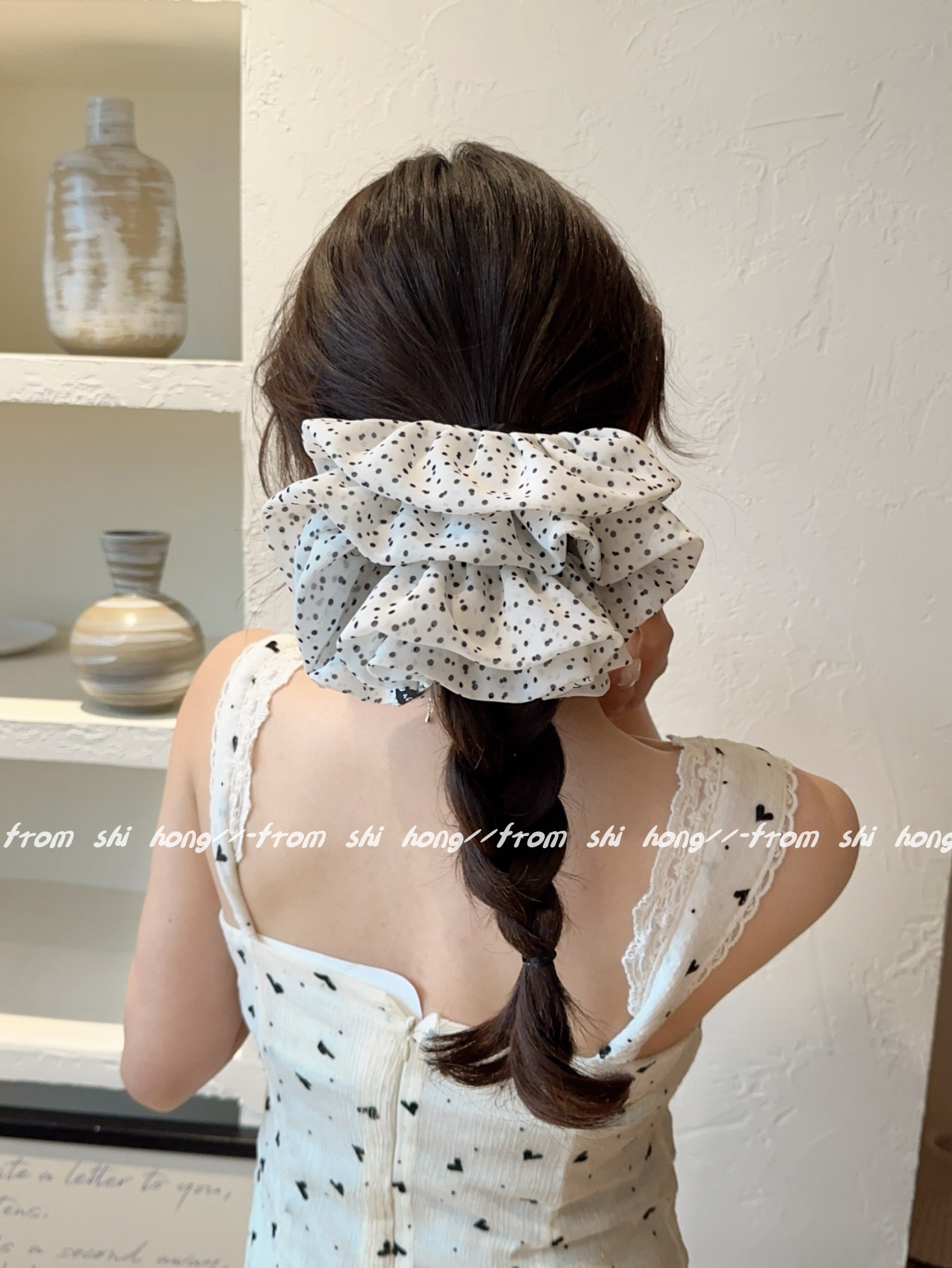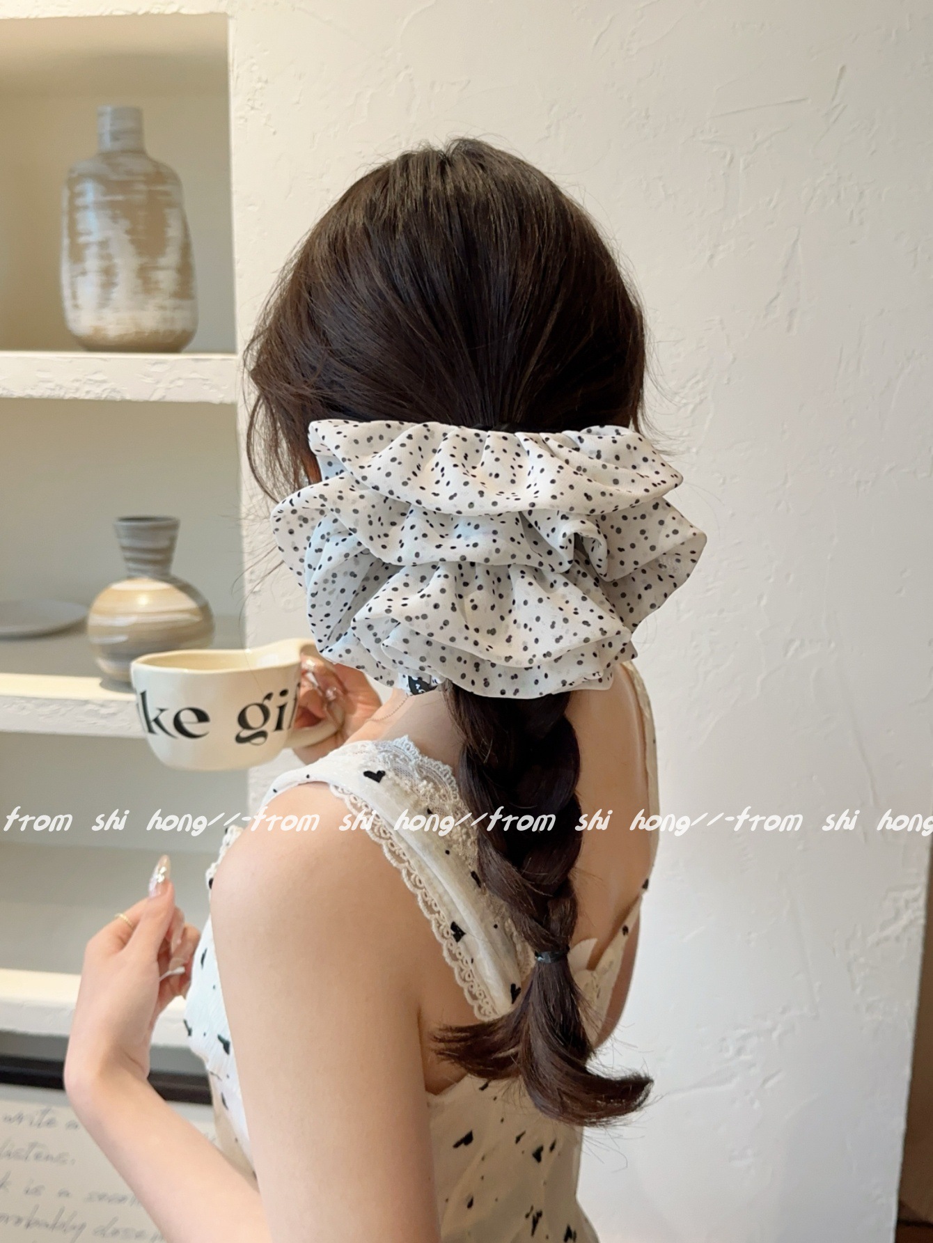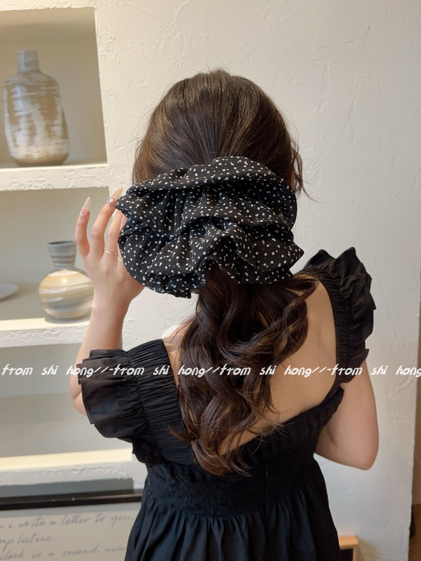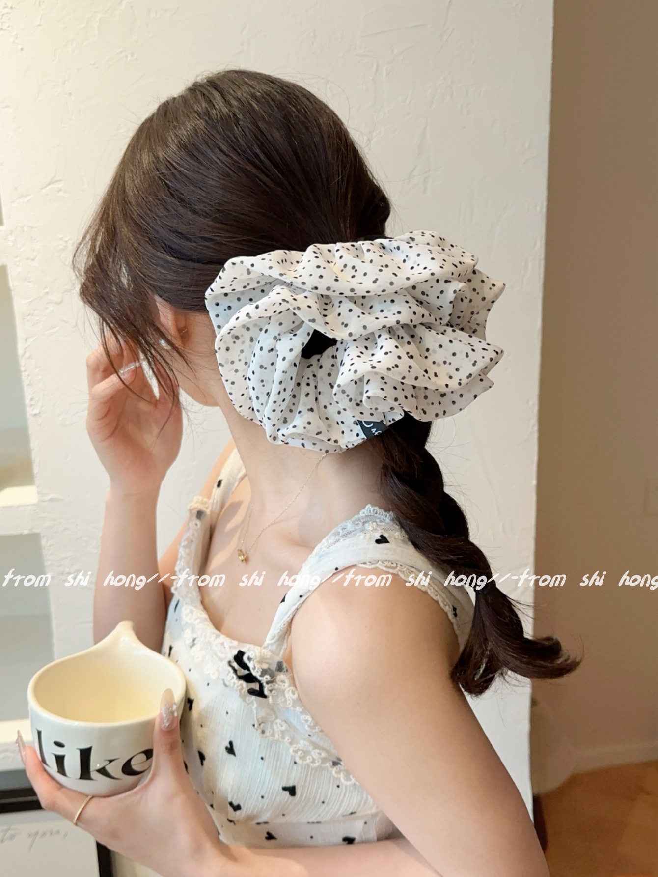 잉크 웨이브 도트 라이트 원사 패브릭 텍스처 레트로 대형 그릇 링 간단한 올 매치 헤어 액세서리 헤어 로프 헤어 로프 인터넷 유명 헤어 액세서리