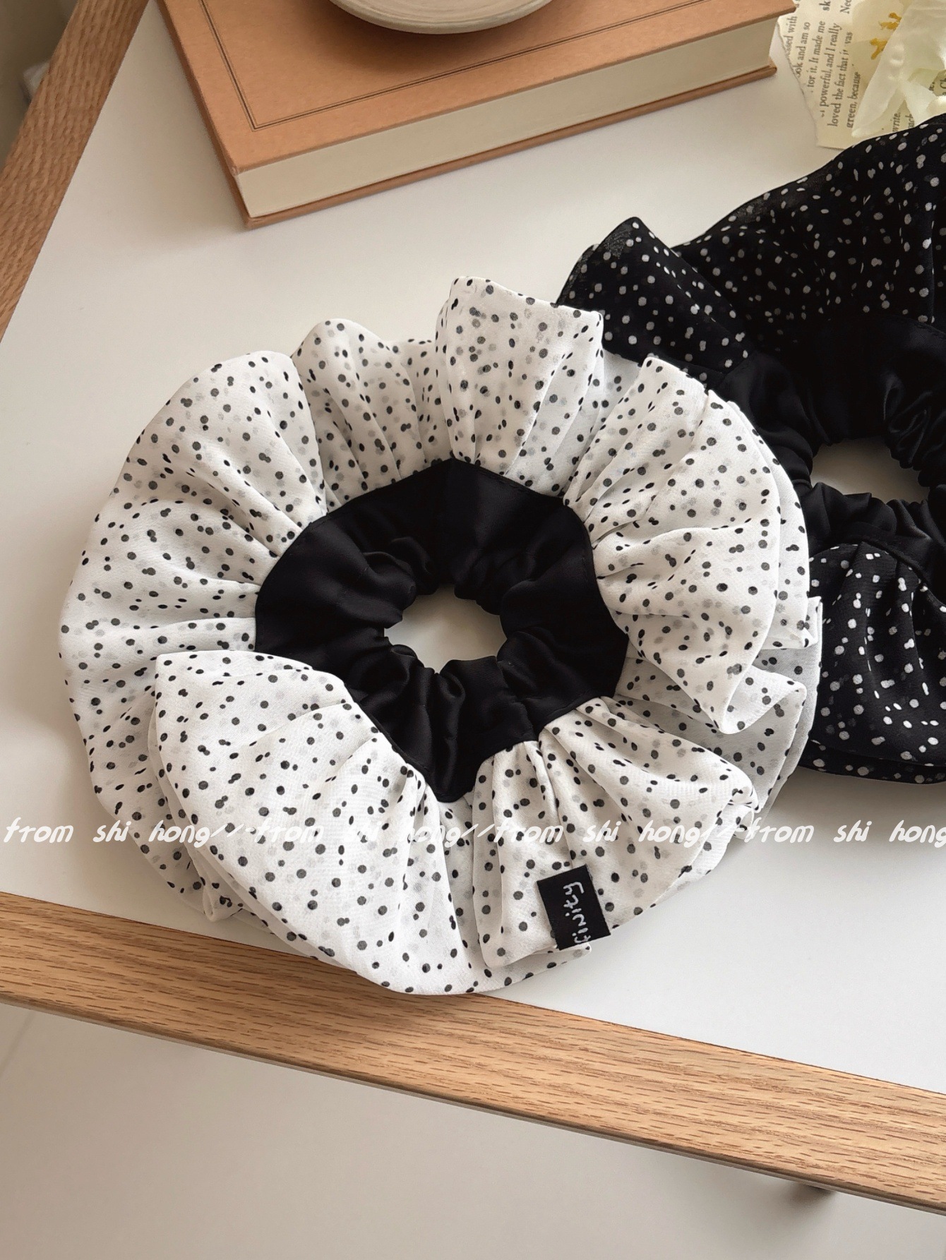 잉크 웨이브 도트 라이트 원사 패브릭 텍스처 레트로 대형 그릇 링 간단한 올 매치 헤어 액세서리 헤어 로프 헤어 로프 인터넷 유명 헤어 액세서리스토어 가기