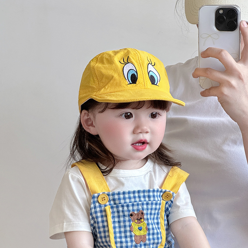 아기 모자 봄 여름 얇은 빠른 건조 모자 귀여운 부드러운 챙이 노란 오리 야구 모자 아기 차양 모자 조수