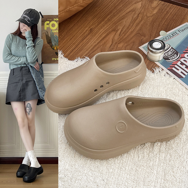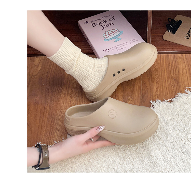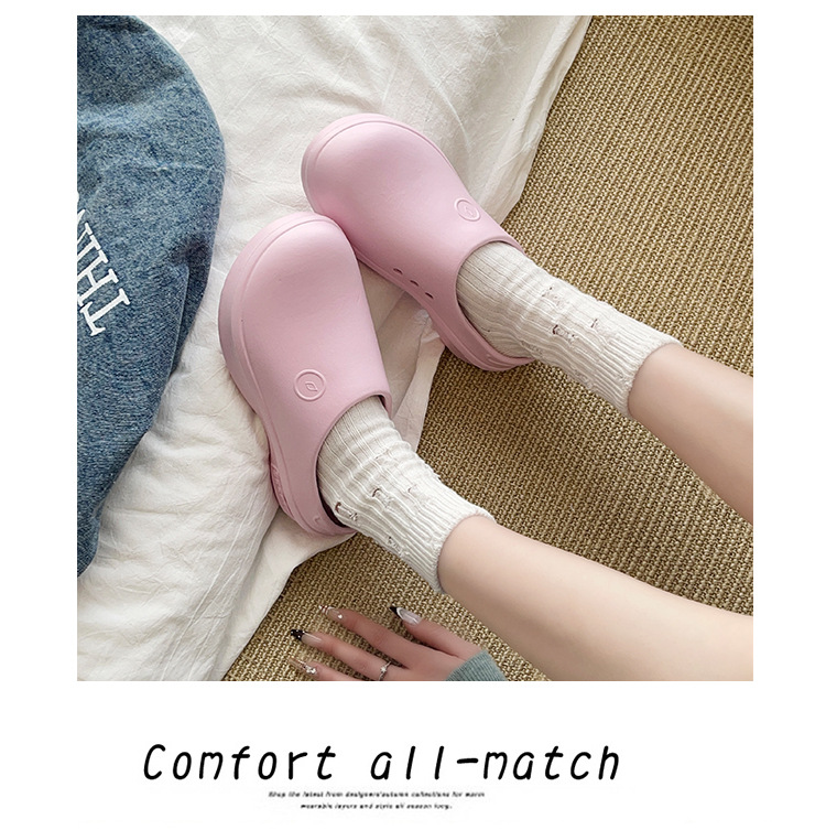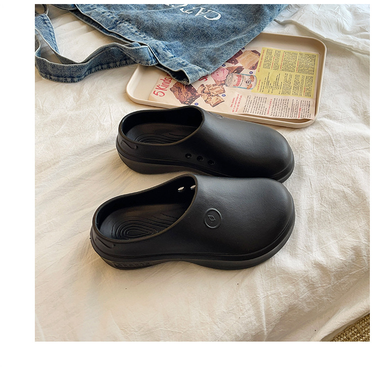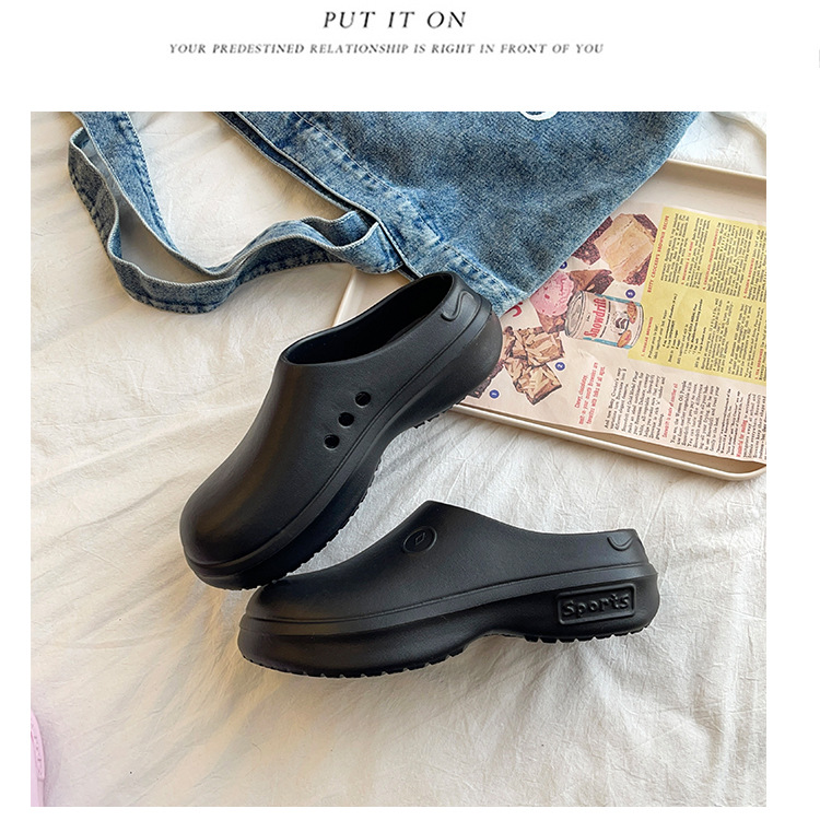 키높이 요리사 신발 일체형 슬리퍼 EVA 두꺼운 밑창 앞코가 덮인 신발 신형 경량 미끄럼 방지 구멍 신발 반슬리퍼 여성용