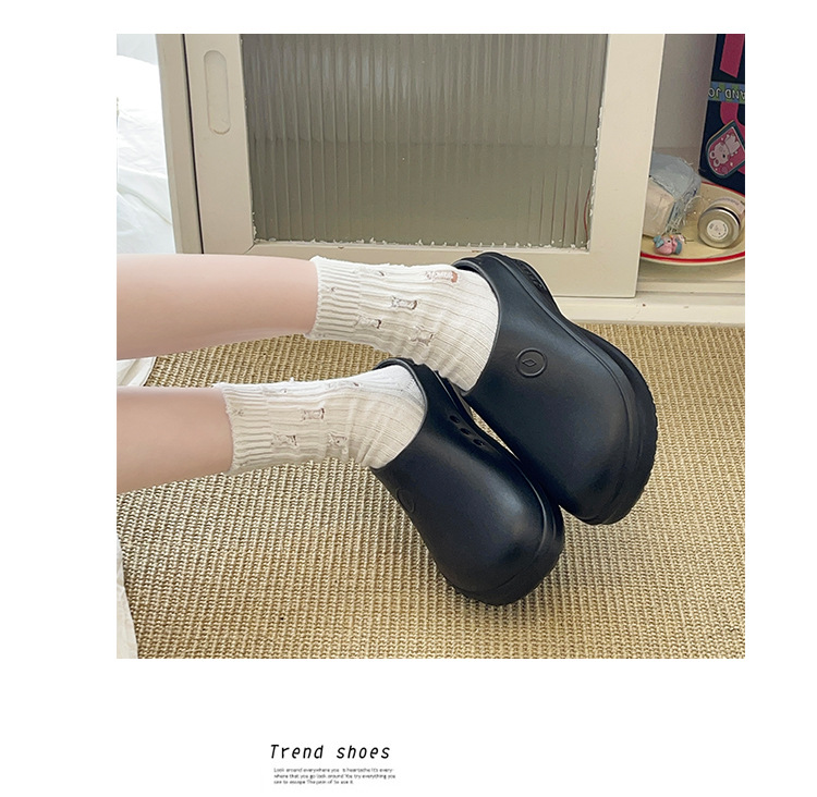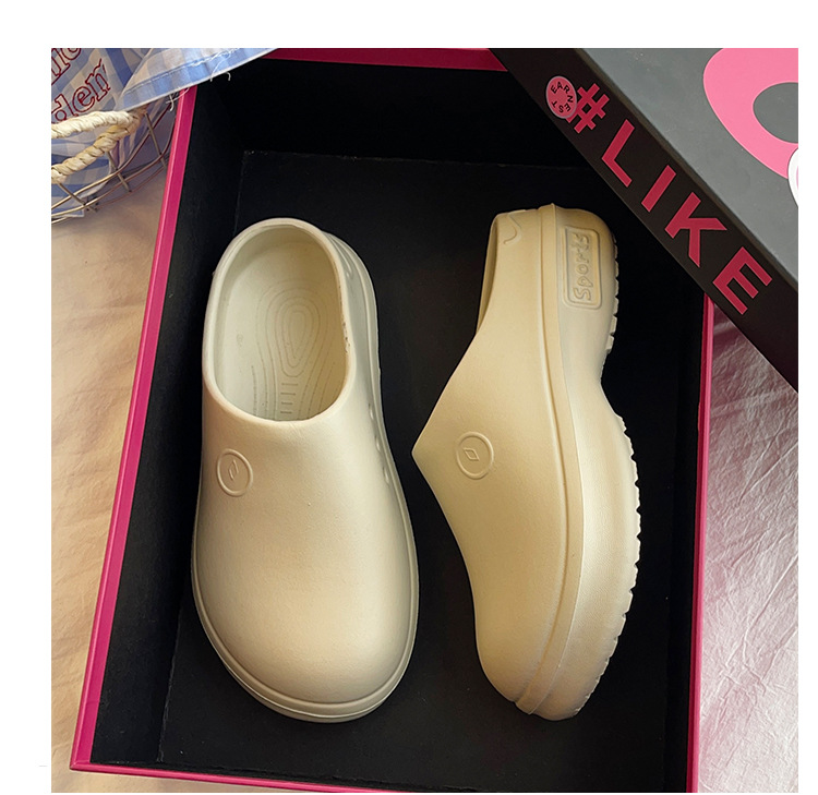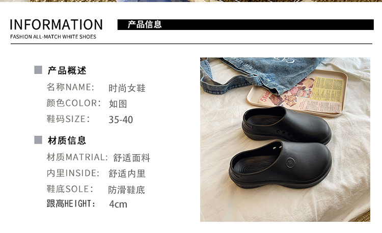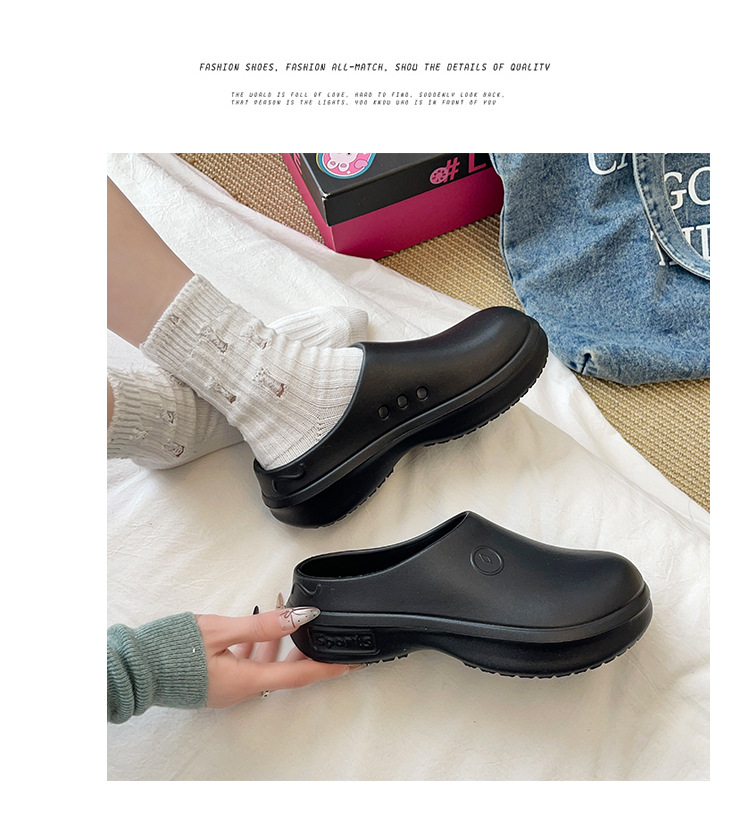 키높이 요리사 신발 일체형 슬리퍼 EVA 두꺼운 밑창 앞코가 덮인 신발 신형 경량 미끄럼 방지 구멍 신발 반슬리퍼 여성용스토어 가기