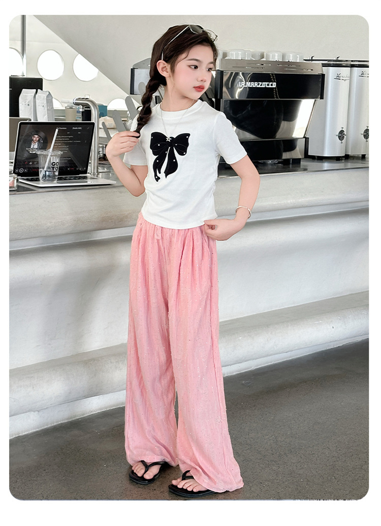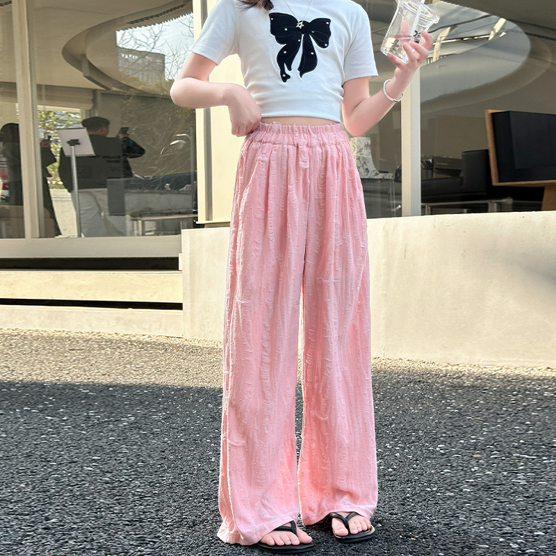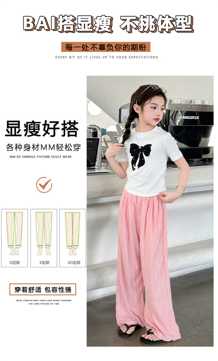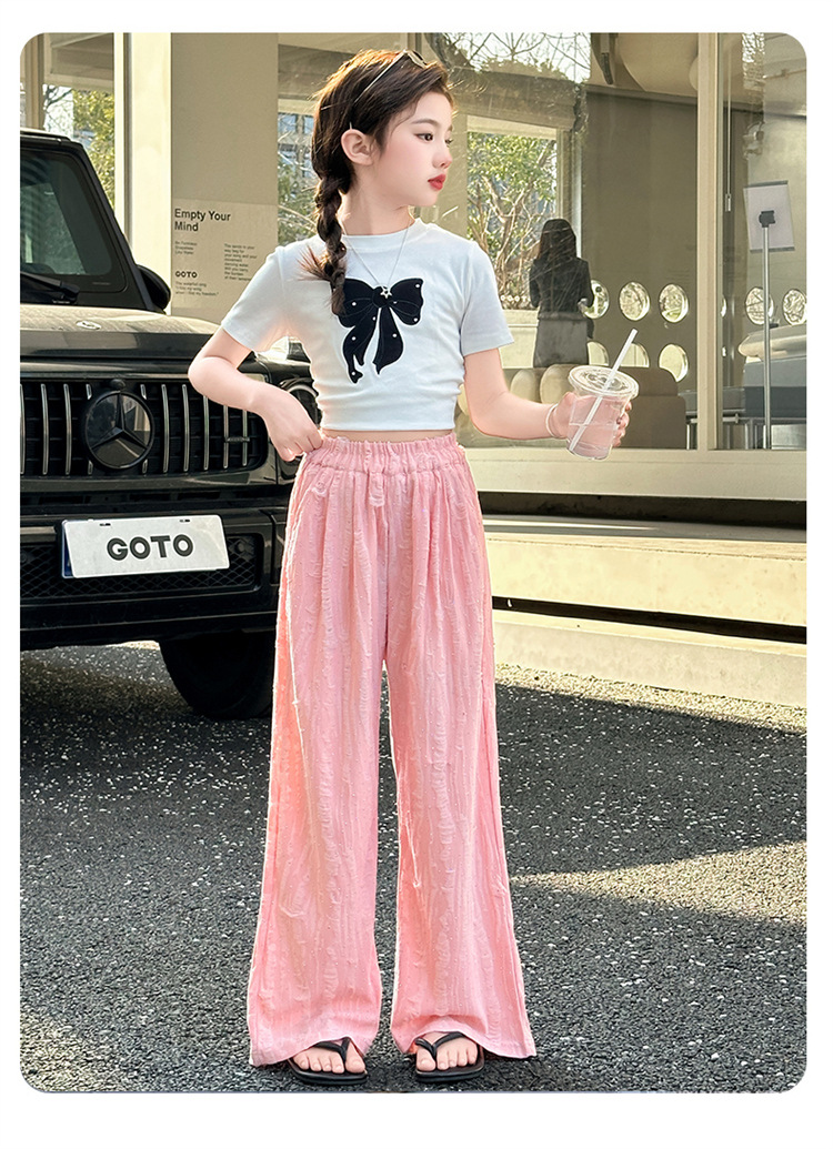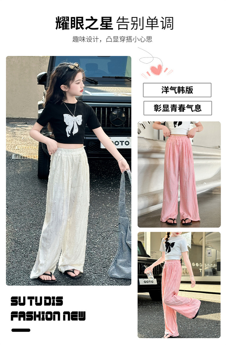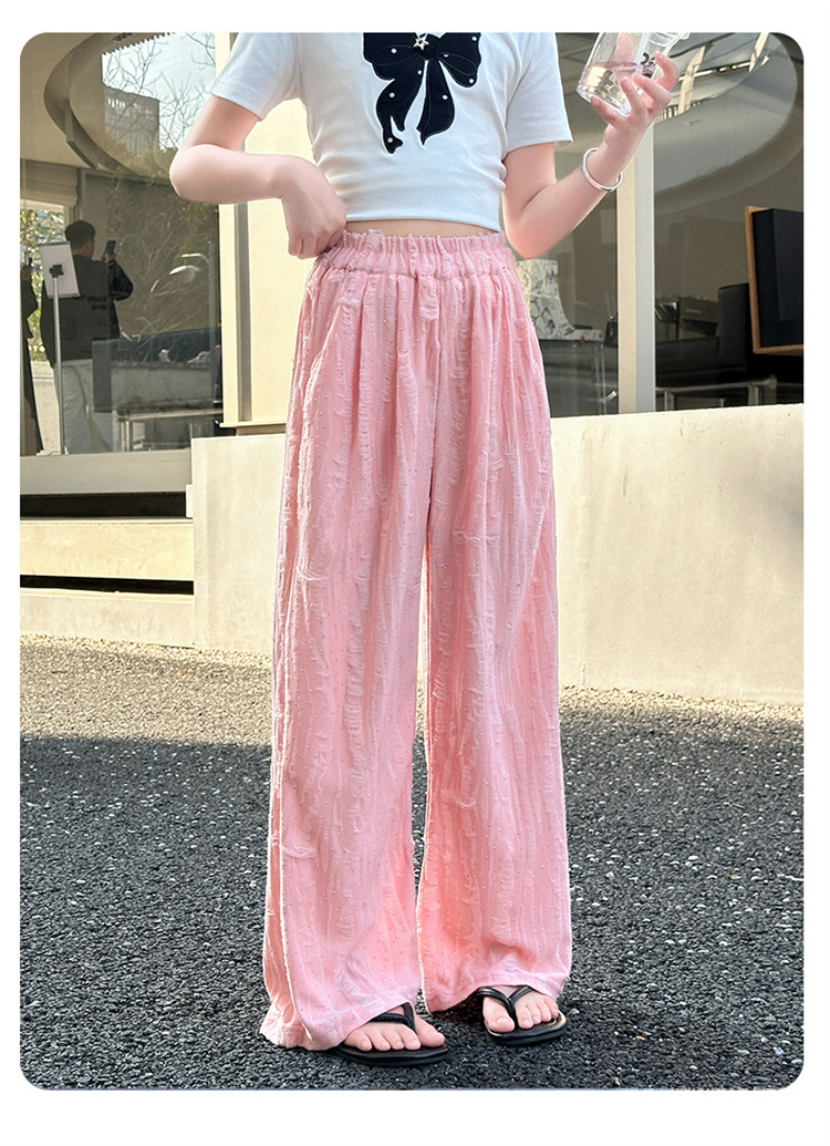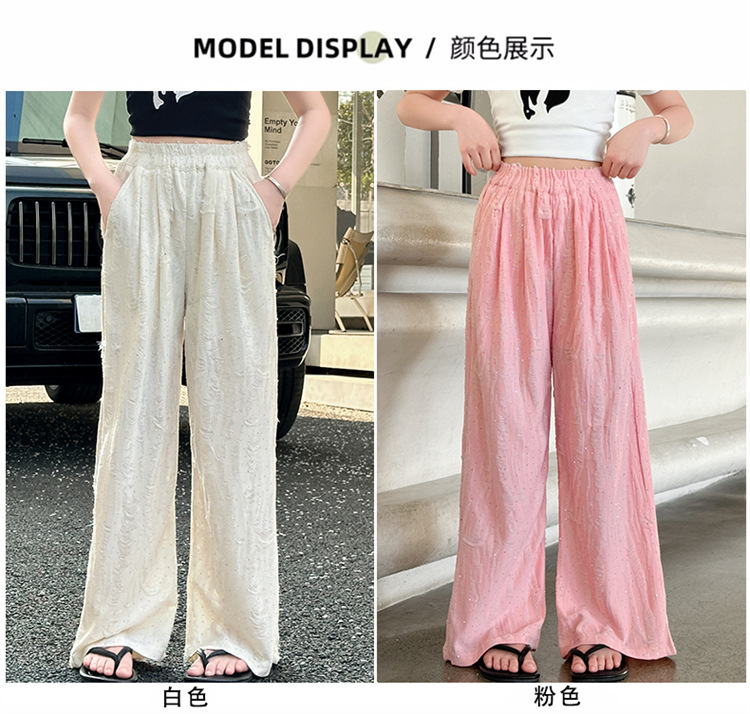 소녀 여름 넓은 다리 바지 2025 새로운 어린이 여름 캐주얼 바지 소녀 세련된 패션 핫 드릴링 야마모토 트렌디 바지스토어 가기