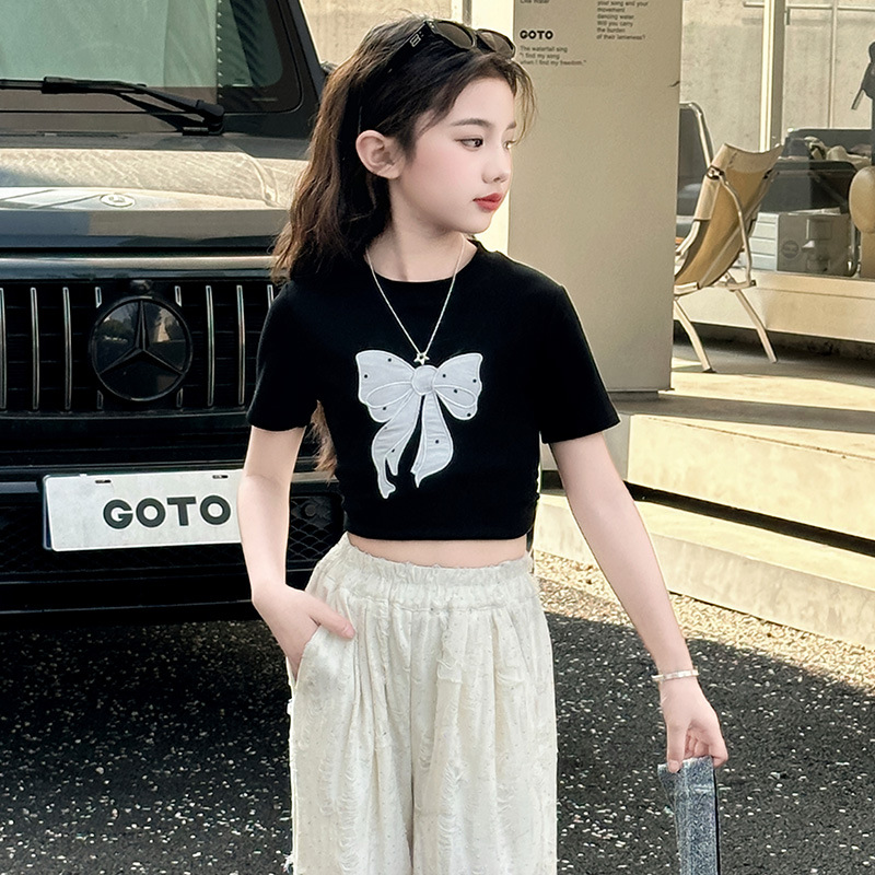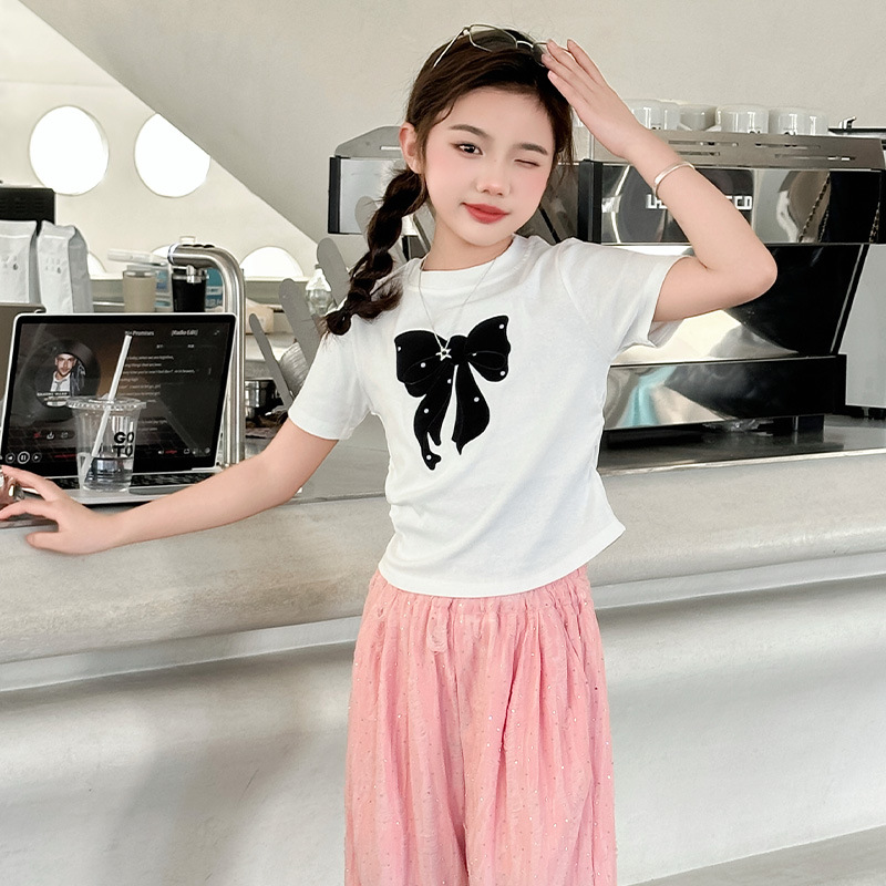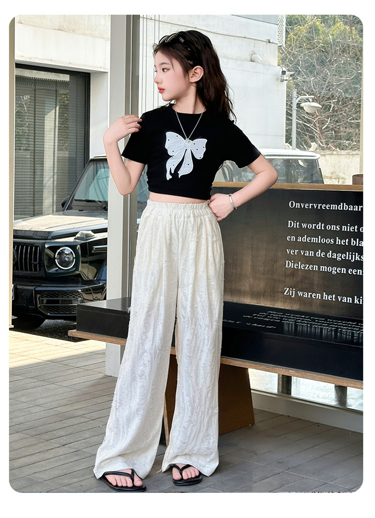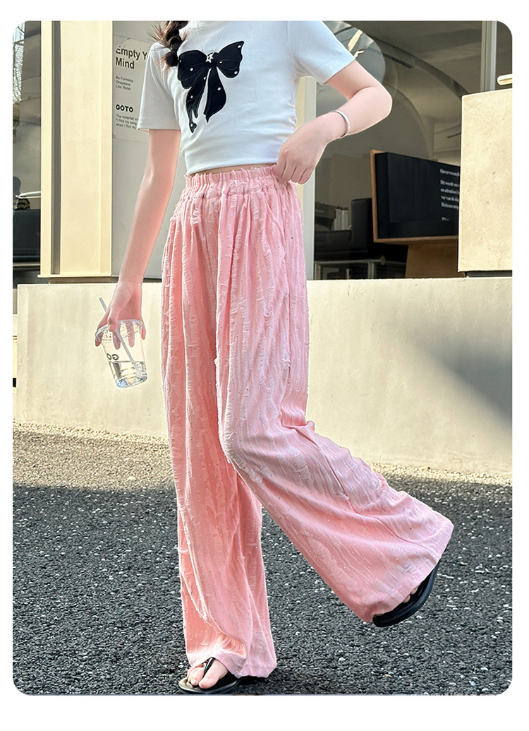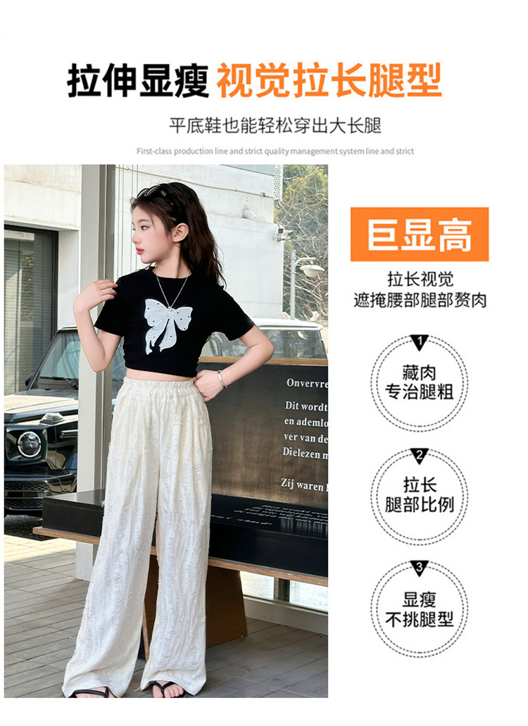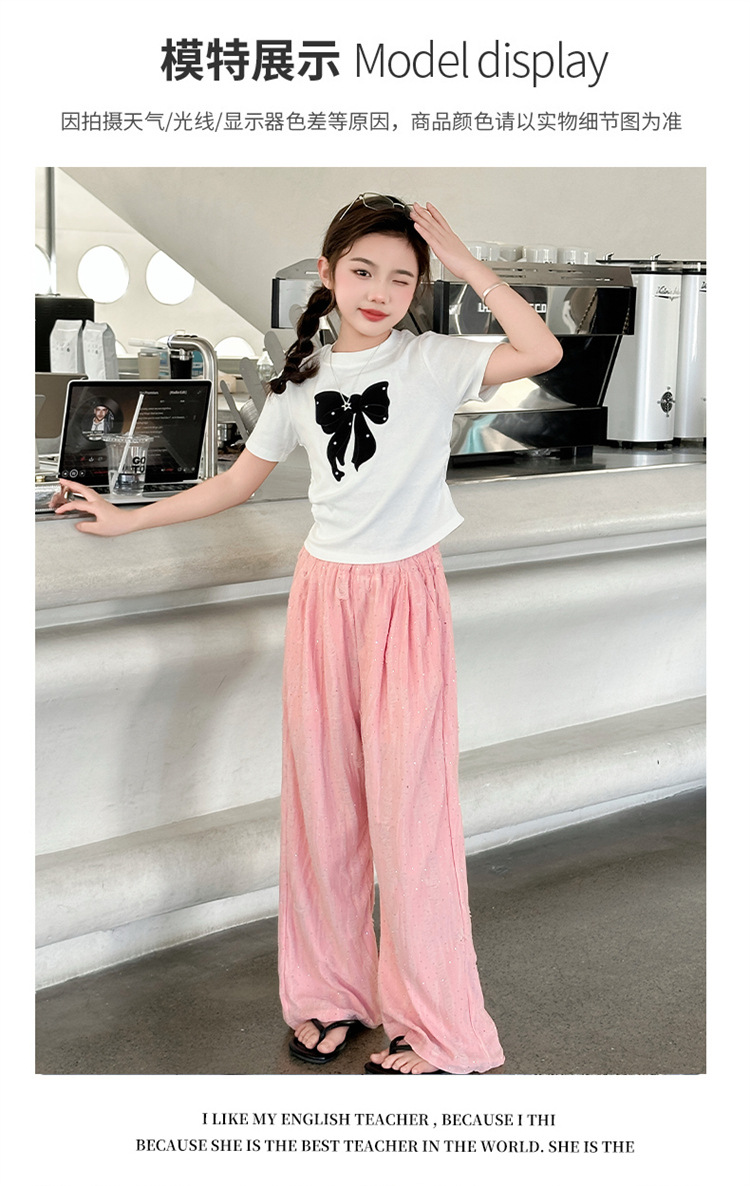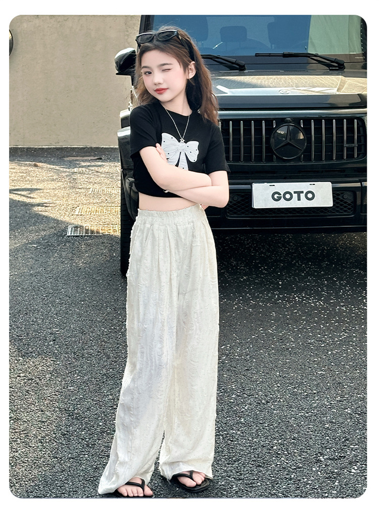 소녀 여름 넓은 다리 바지 2025 새로운 어린이 여름 캐주얼 바지 소녀 세련된 패션 핫 드릴링 야마모토 트렌디 바지스토어 가기