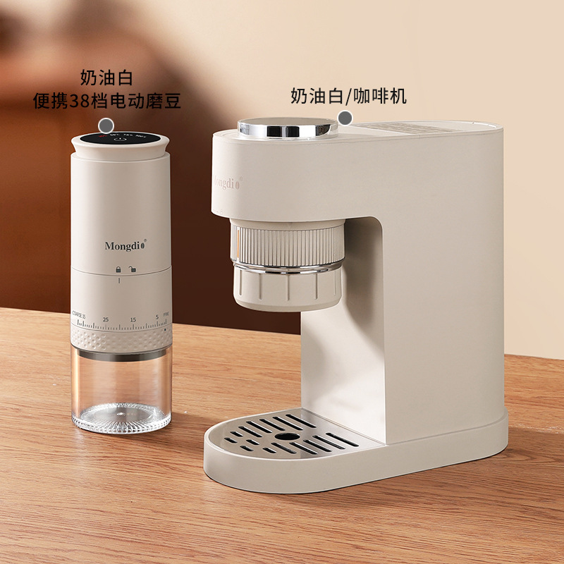• [크림화이트 2종세트] 캡슐커피머신 + 외장형 38단 전동그라인더