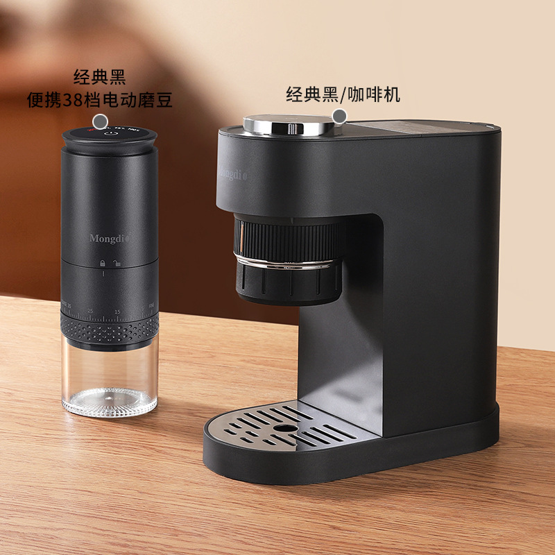 • [클래식 블랙 2종 세트] 캡슐 커피 머신 + 외부 38단 전동 그라인더