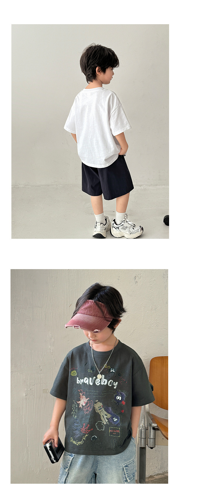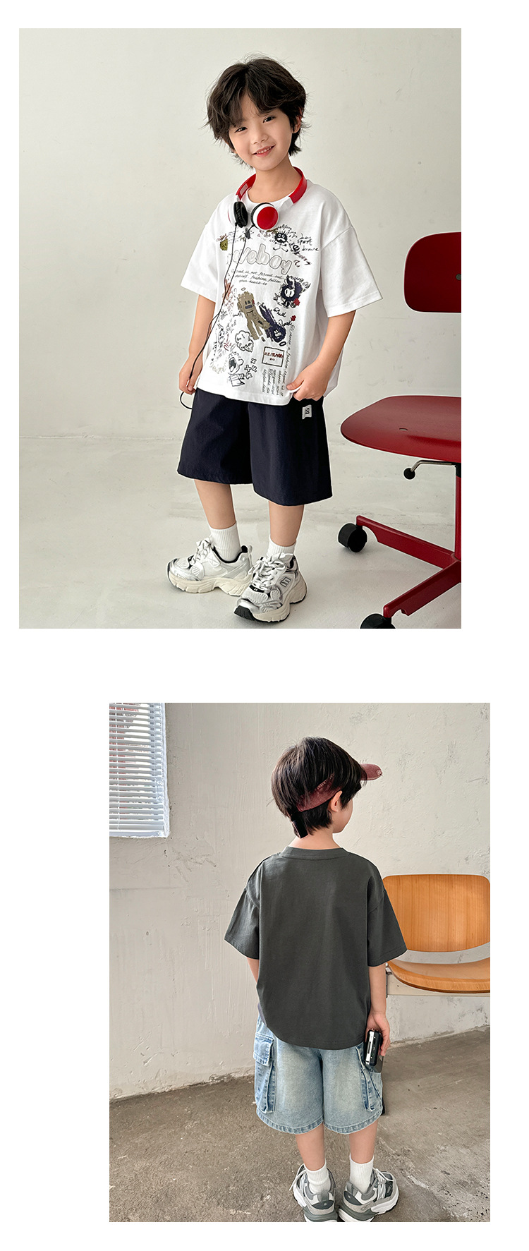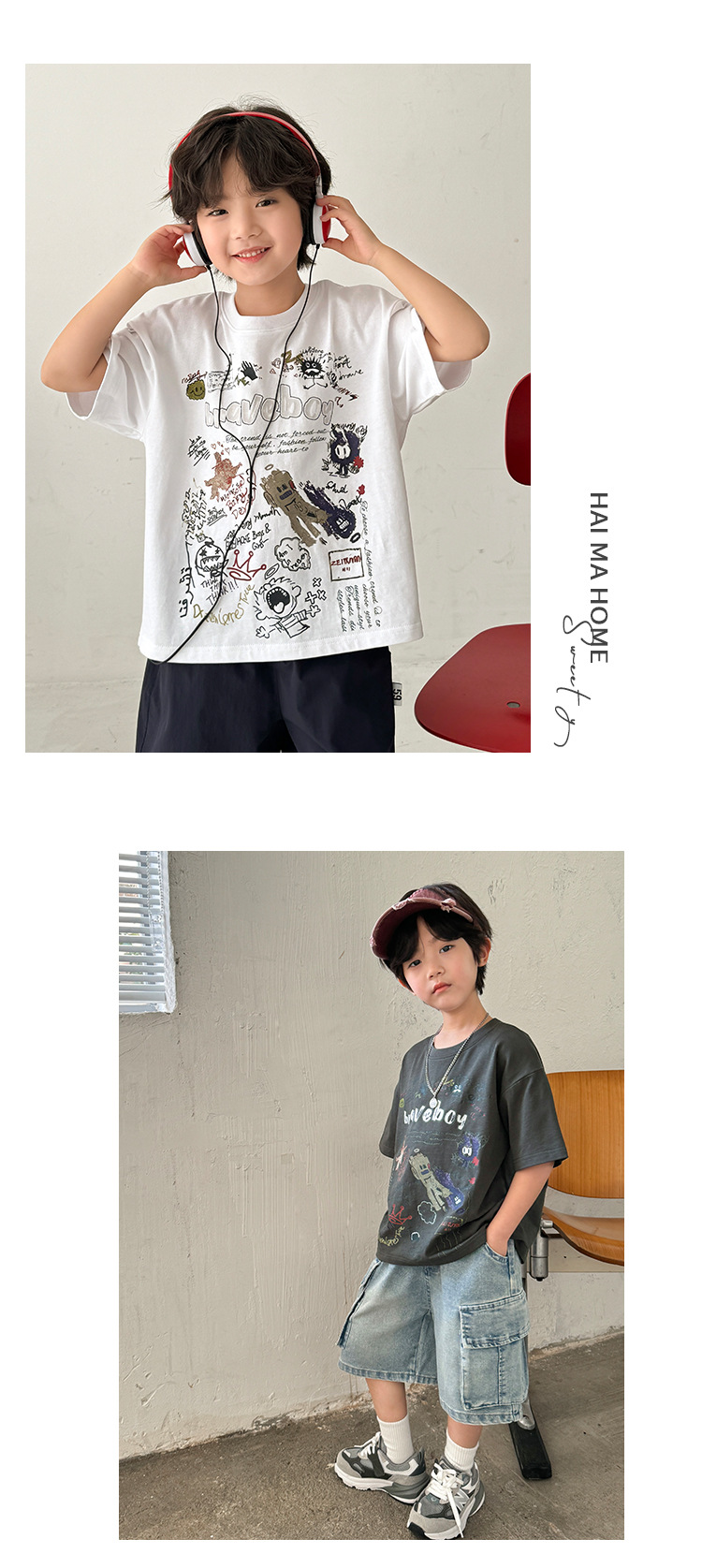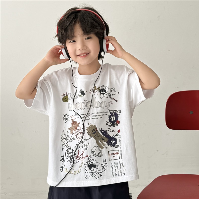 남학생 면 낙서 인쇄 반소매 티셔츠 서양식 여름 옷 Haima 홈 2025 여름 새로운 중다 어린이스토어 가기