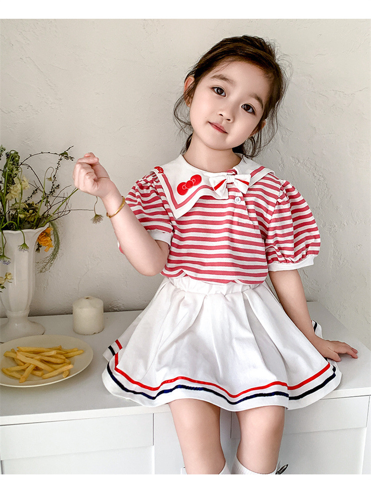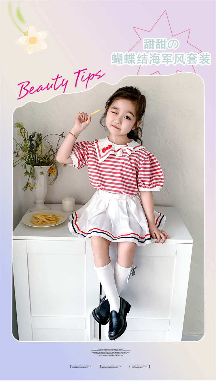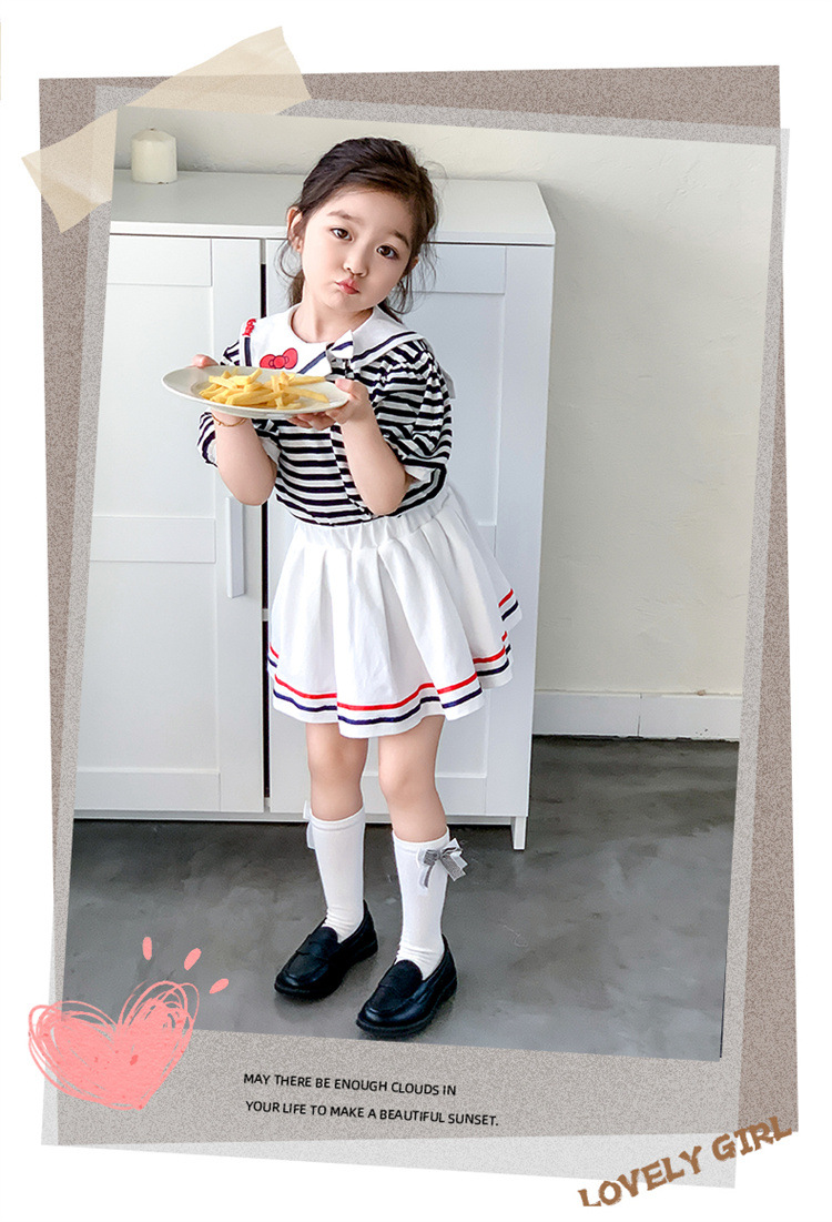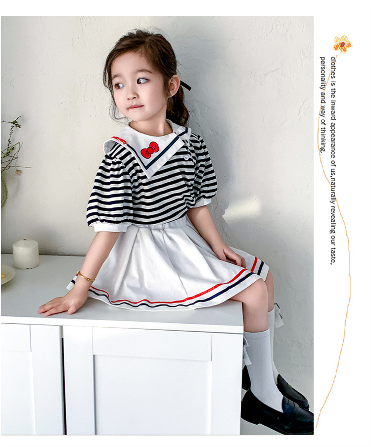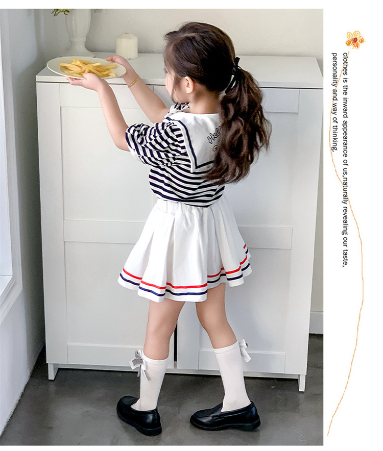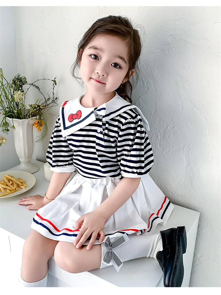 소녀 줄무늬 해군 스타일 세트 2025 여름 새로운 패션 소녀 세련된 투피스 세트 어린이 여름 원피스스토어 가기