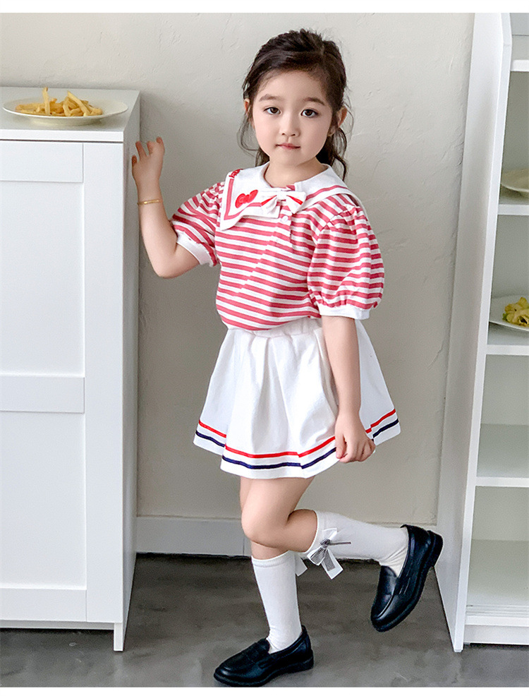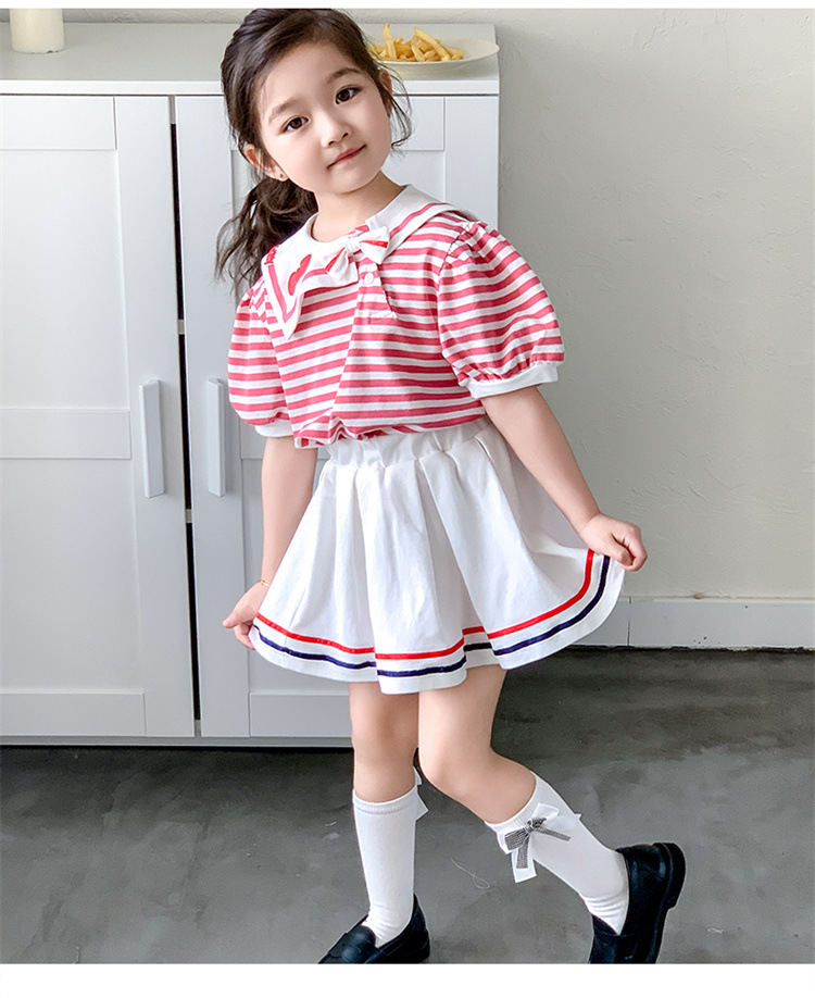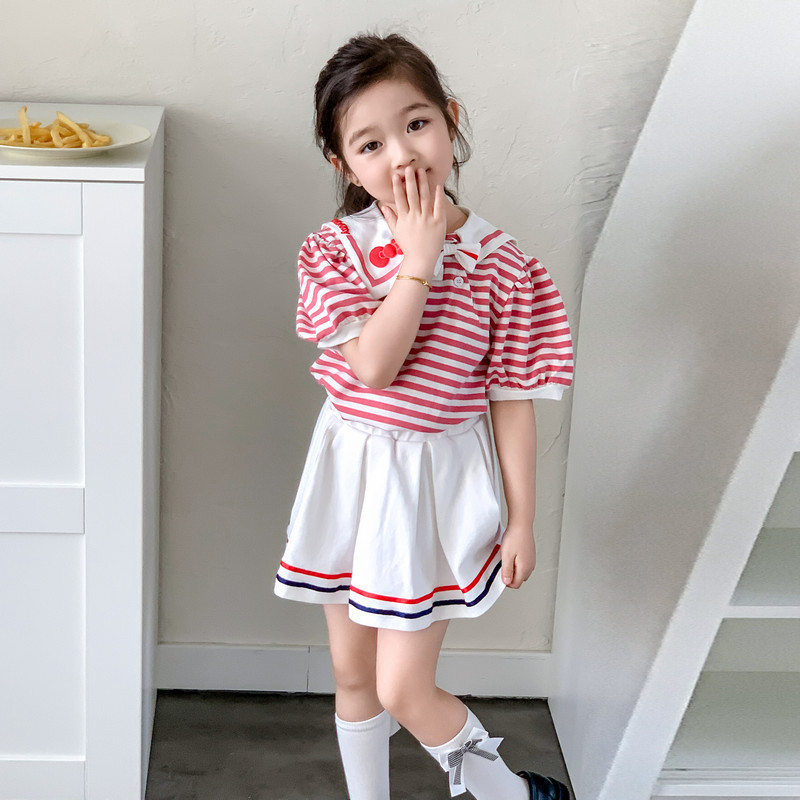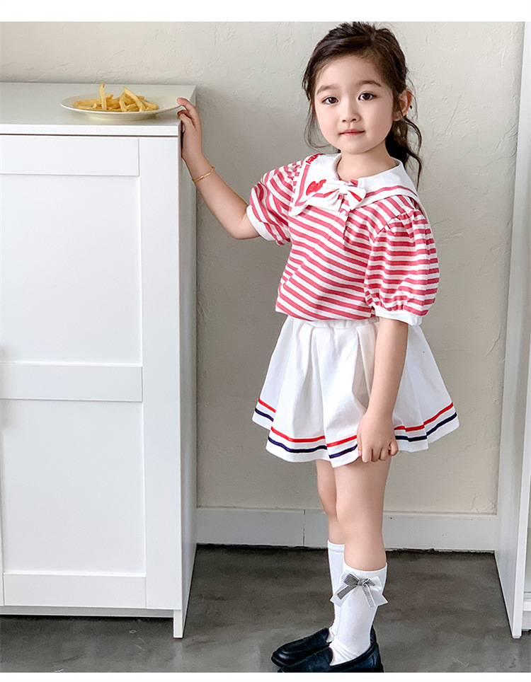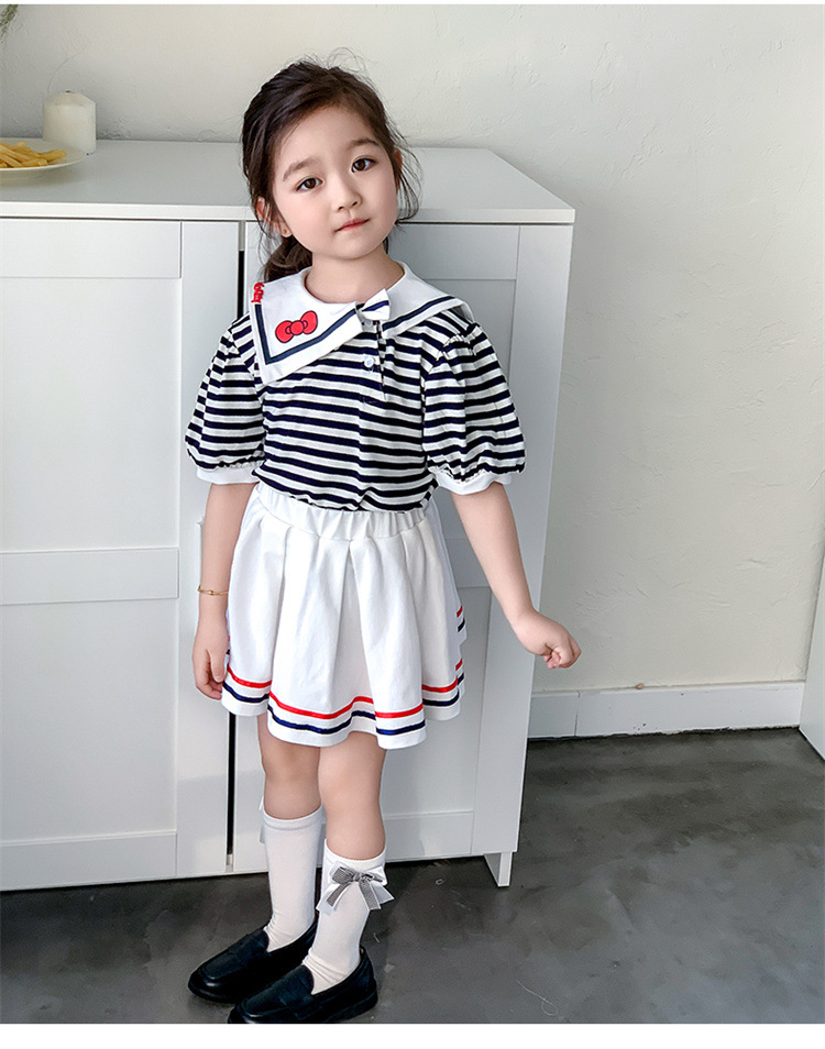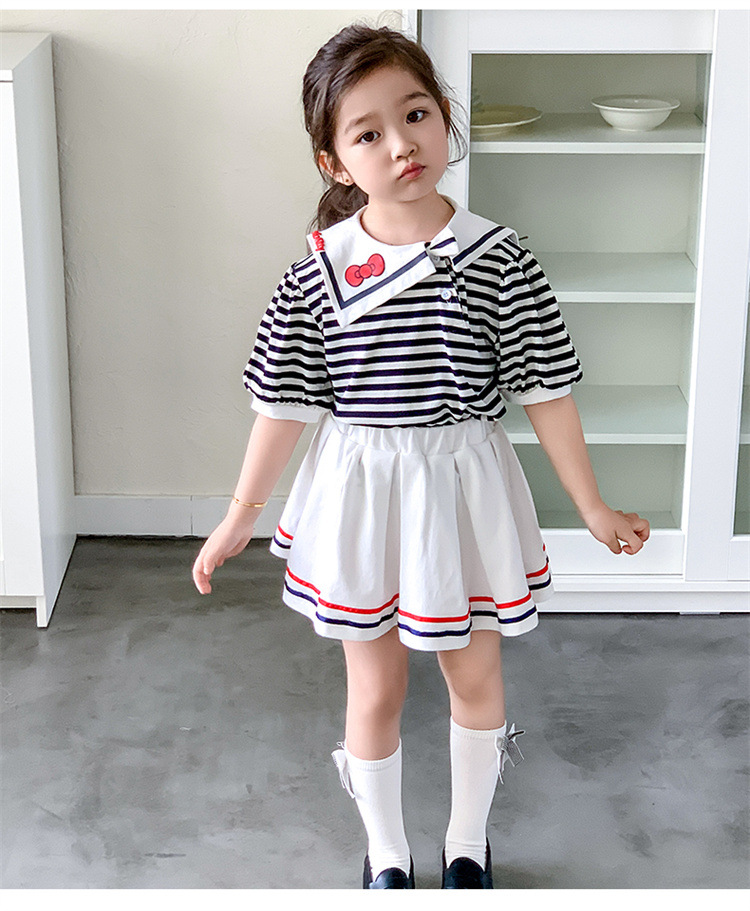 소녀 줄무늬 해군 스타일 세트 2025 여름 새로운 패션 소녀 세련된 투피스 세트 어린이 여름 원피스스토어 가기