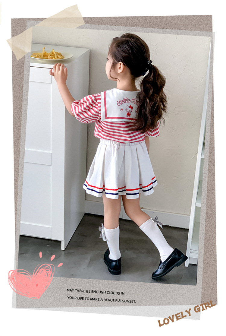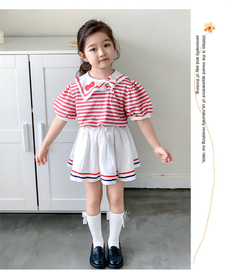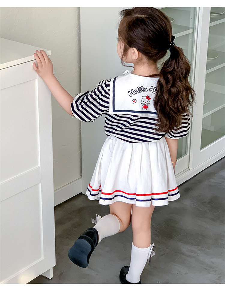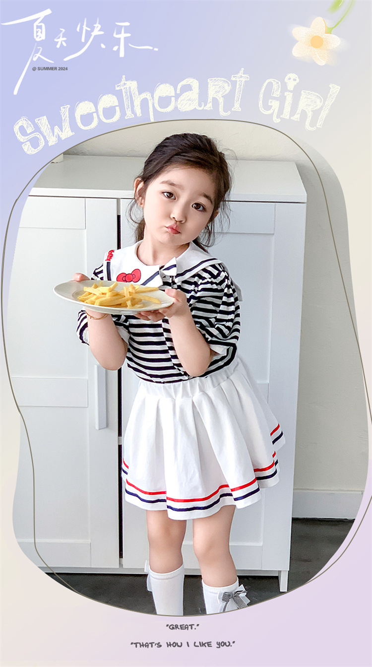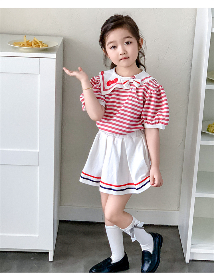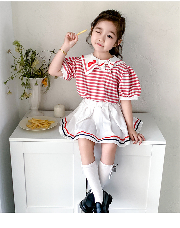 소녀 줄무늬 해군 스타일 세트 2025 여름 새로운 패션 소녀 세련된 투피스 세트 어린이 여름 원피스스토어 가기