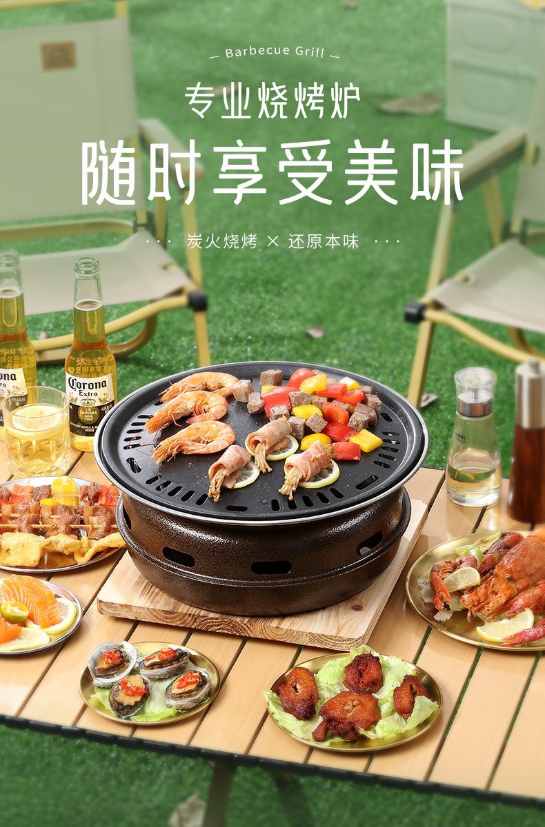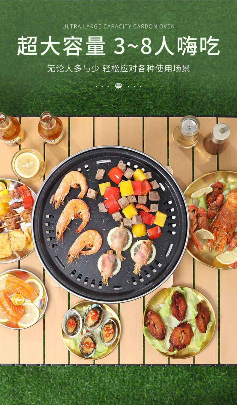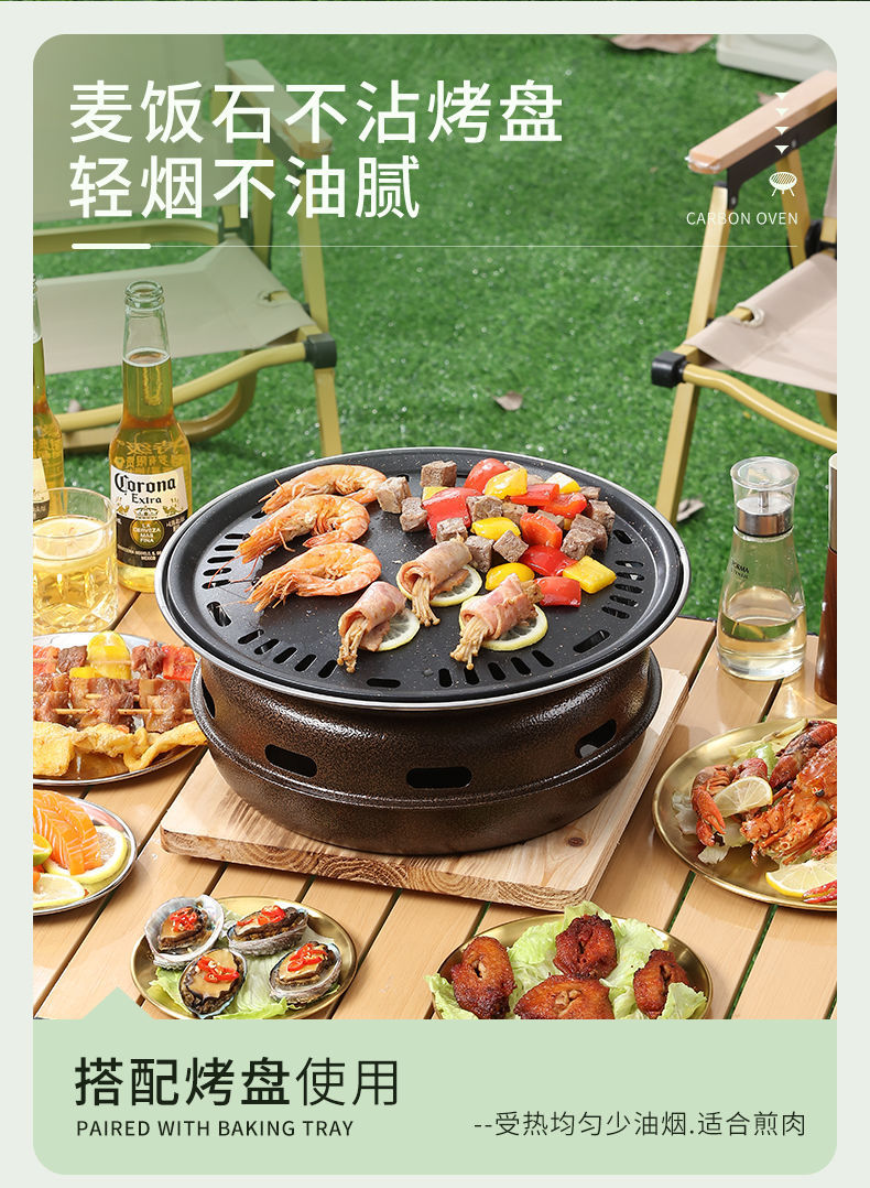 바베큐 그릴 고기와 차 만들기 가정용 상업용 탄소 오븐 라운드 클리어런스로 한국식 바베큐 테파야키 두꺼운