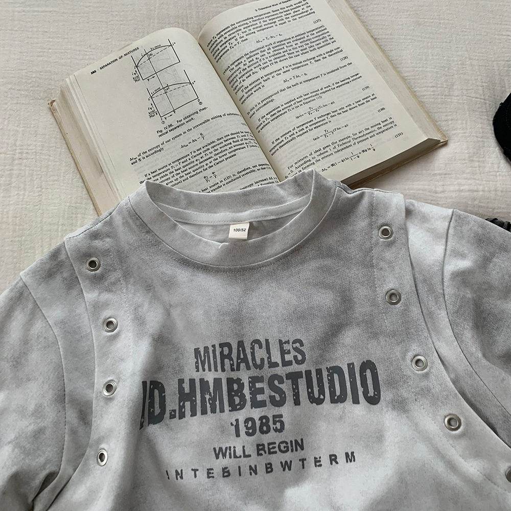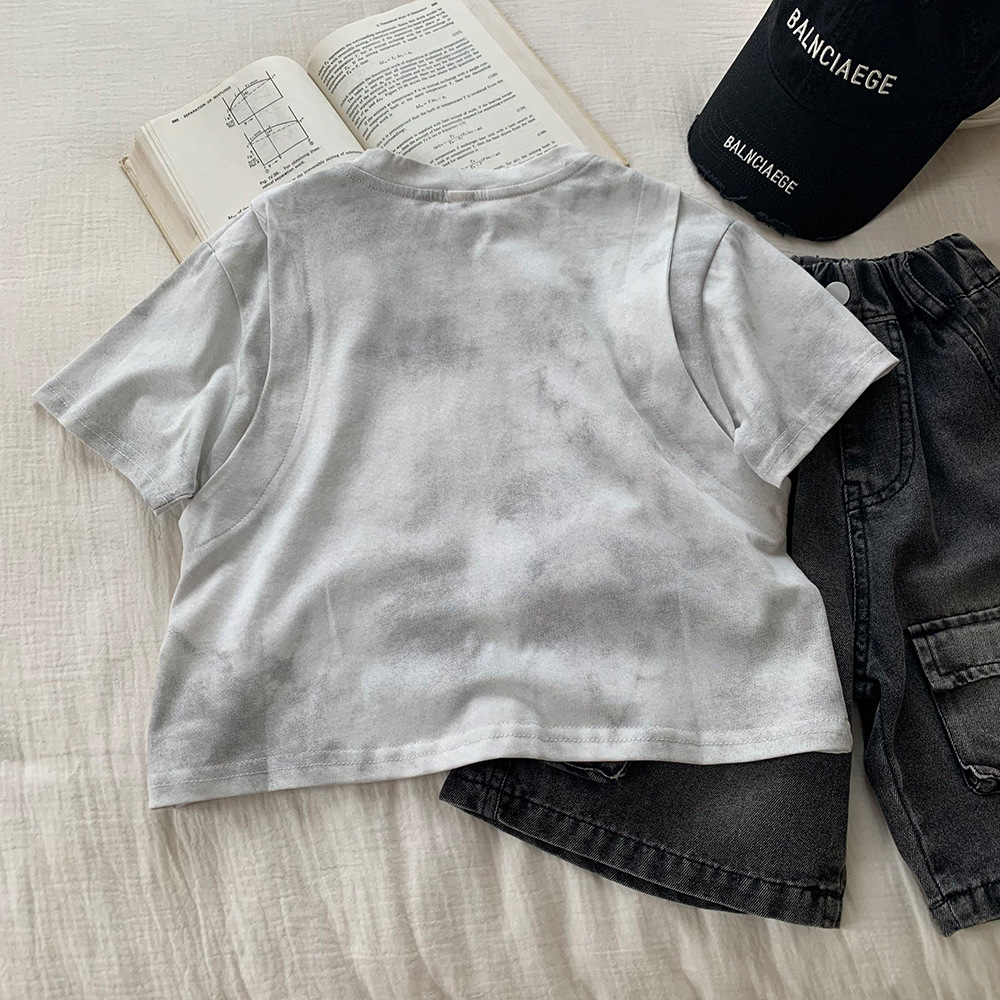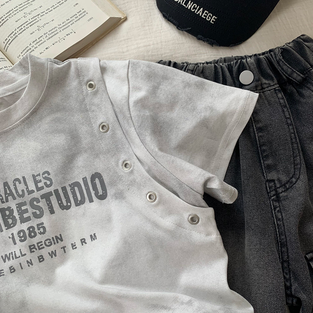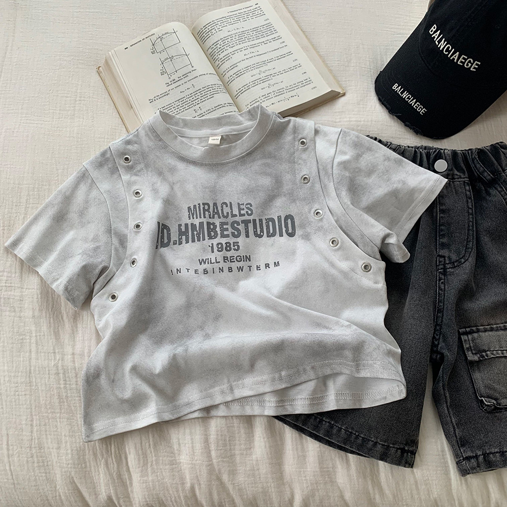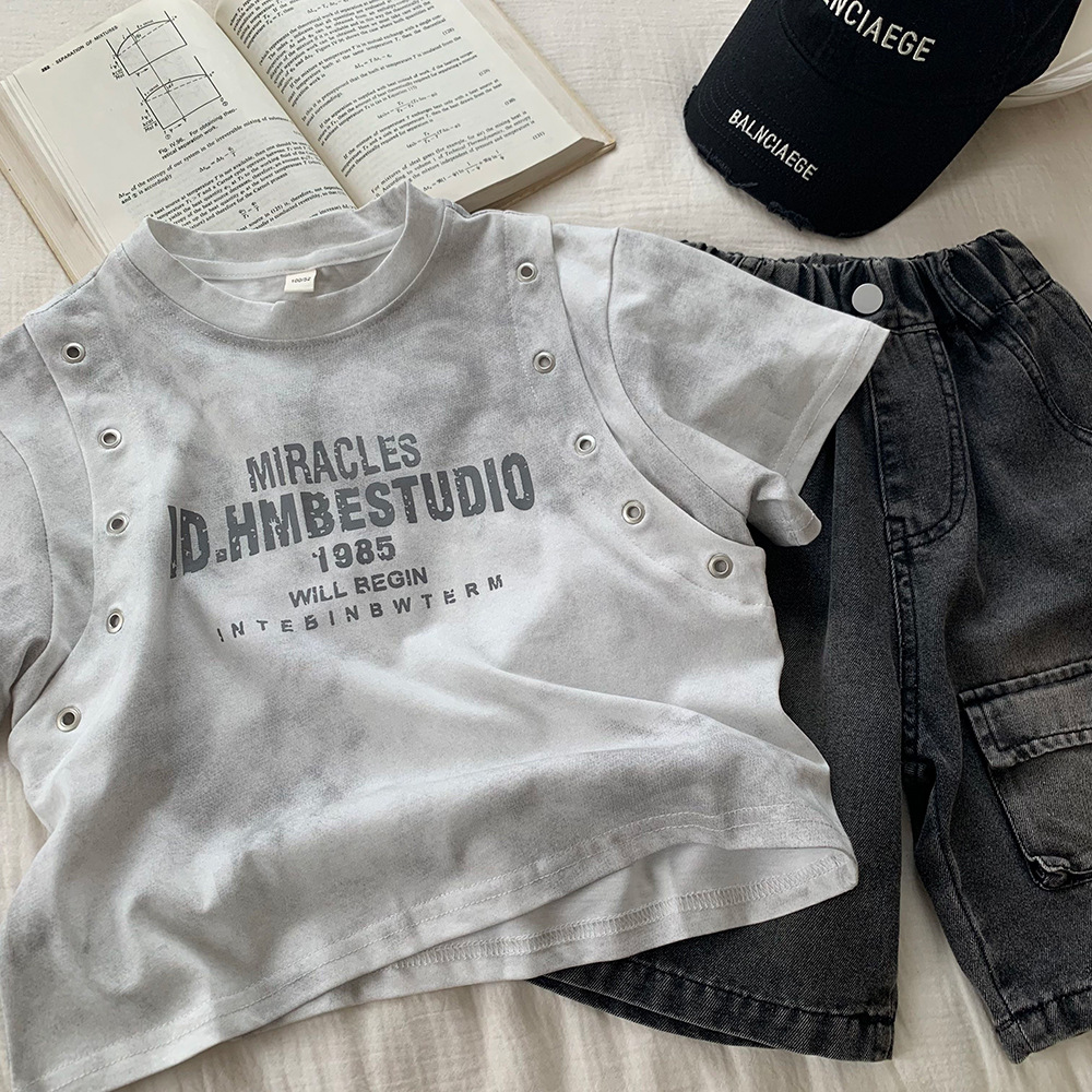 반팔 티셔츠를 인쇄하는 어린이 편지 2025 년 여름 새로운 소년과 소녀 스타일 느슨한 아동복 최고 트렌디 T스토어 가기