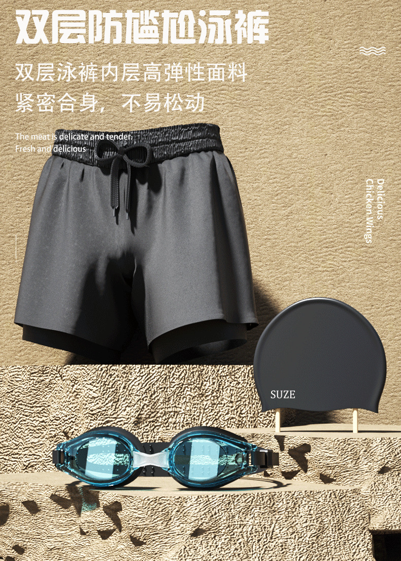 수영 트렁크 남성 안티 당혹감 더블 레이어 빠른 건조 남성 수영 트렁크 플랫 앵글 비치 바지 온천 수영 장비 세트 도매
