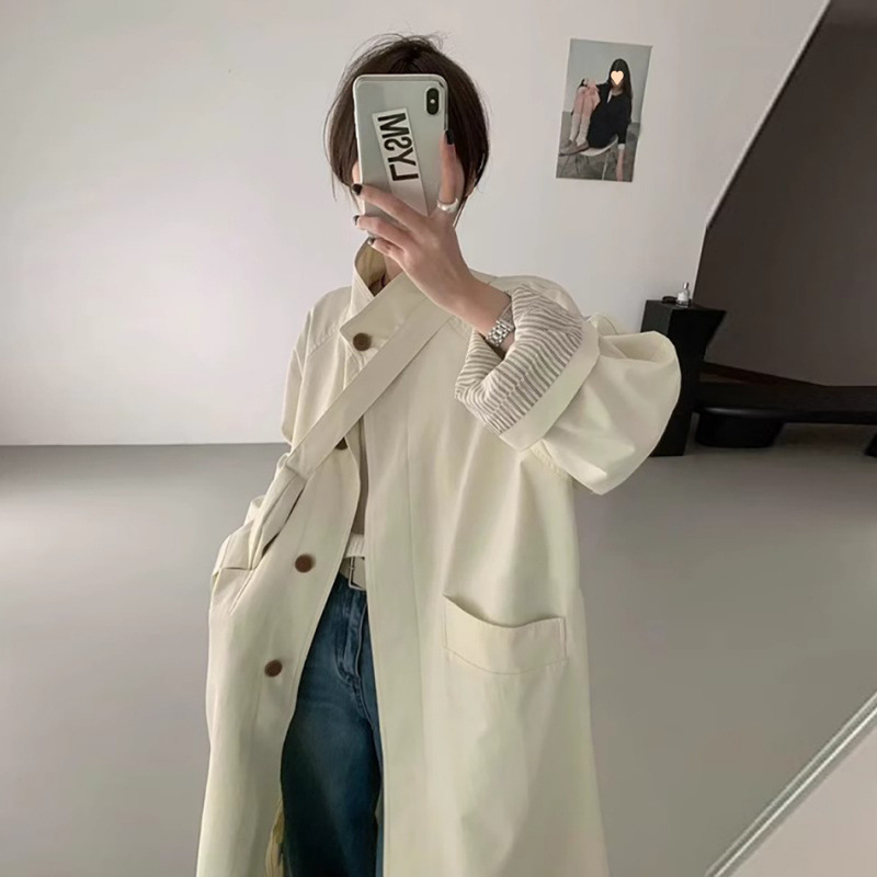 2025 봄과 가을 중간 길이의 학생 영어 코트 여성 리틀 프라이드 스트리트 디자인 센스 수직 칼라 세트 재킷 트렌디스토어 가기
