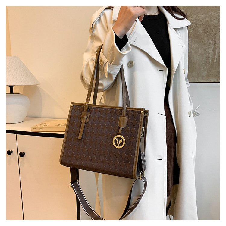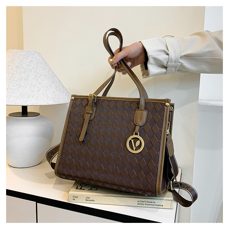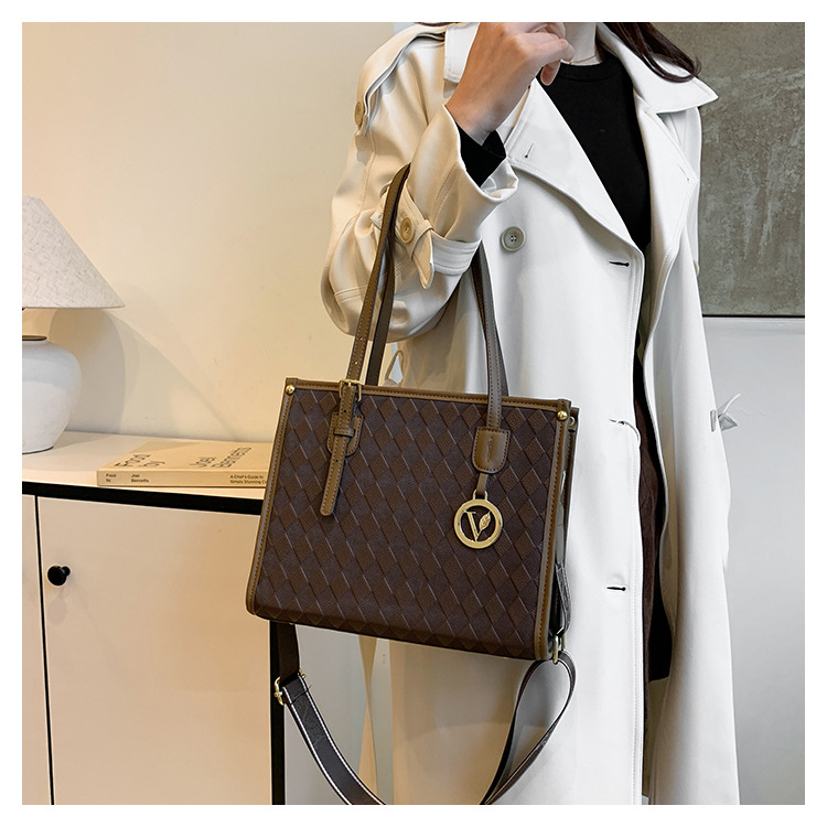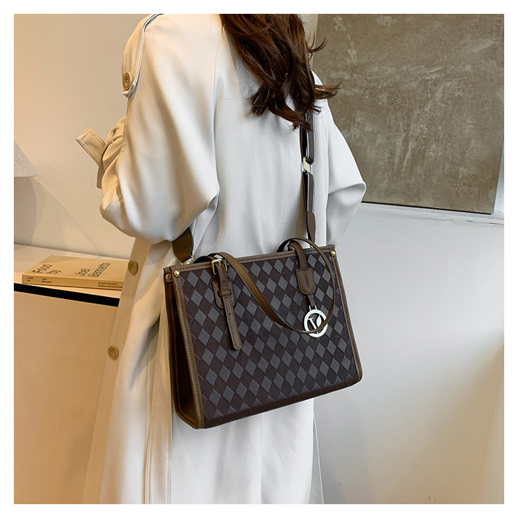 2025 새로운 크로스보더 마름모 휴대용 토트 백 새로운 고급 대용량 와이드 숄더 스트랩 숄더 백 크로스 바디 백스토어 가기