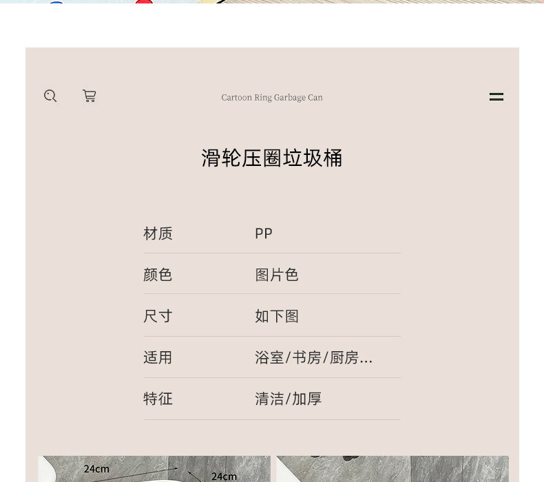 휴지통 가정용 2025 새로운 도착 풀리 주방 거실 침실 화장실 큰 만화 귀여운 창조적 인 쓰레기통스토어 가기