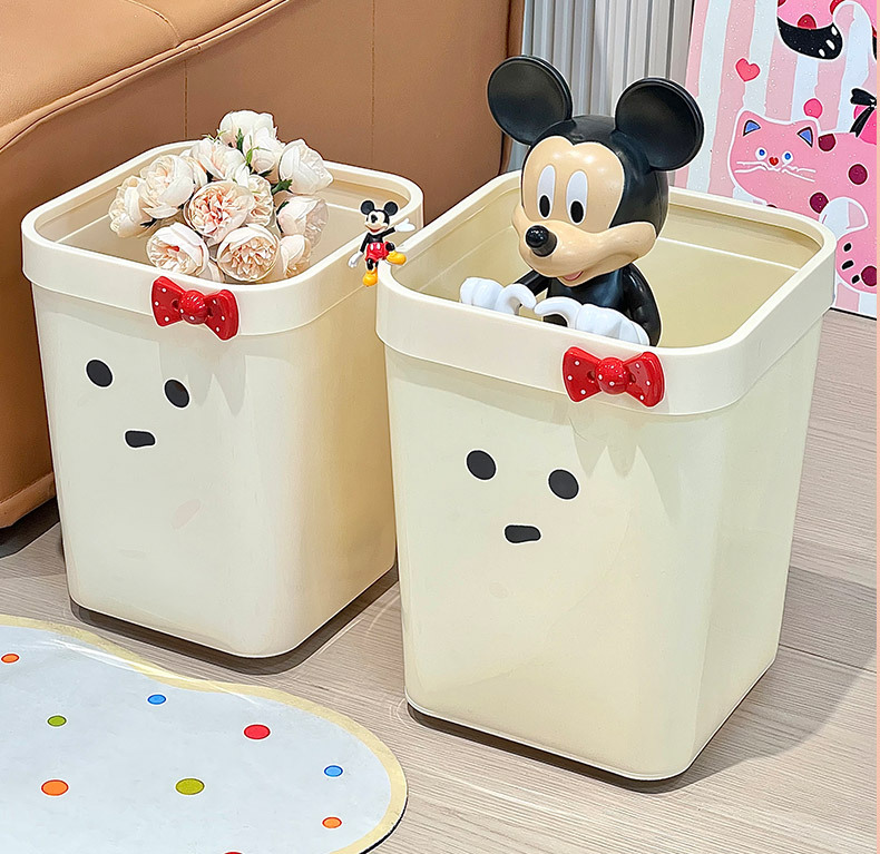휴지통 가정용 2025 새로운 도착 풀리 주방 거실 침실 화장실 큰 만화 귀여운 창조적 인 쓰레기통