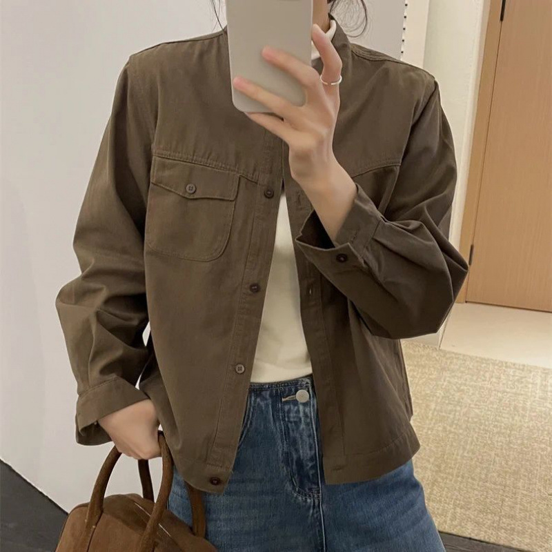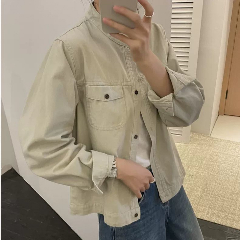 면 작은 칼라 쇼트 코트 여성의 봄과 가을 새 씻은 단면 서양식 한국 캐주얼 워크 재킷스토어 가기