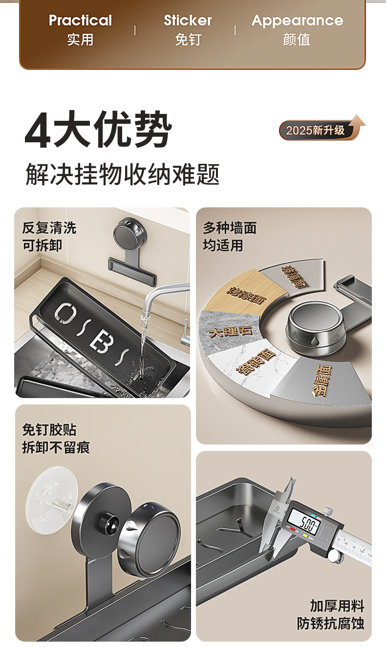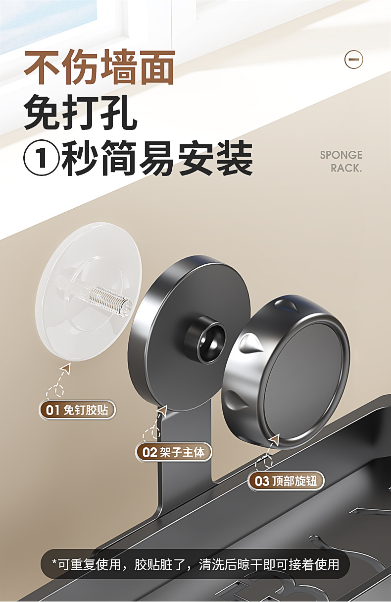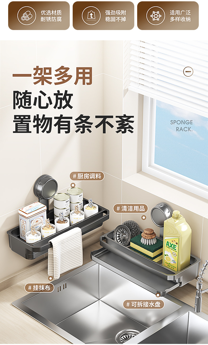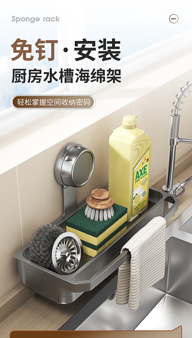 흡입 컵 걸레 배수 랙 주방 싱크대 랙 가정용 벽걸이 형 다기능 스폰지 수영장 수도꼭지 보관
