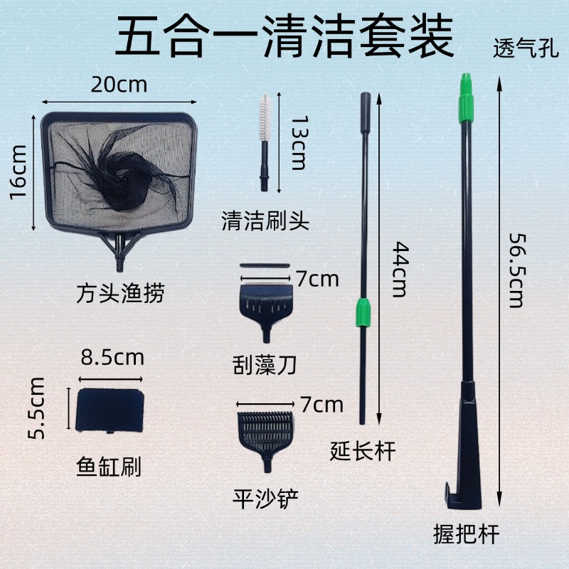 5-in-1 수조 청소 키트, 텔레스코픽 조류 스크레이퍼, 청소 브러시, 플랫 샌드 삽, 낚시 및 낚시, 청소 도구를 한 번에 모두 처리스토어 가기
