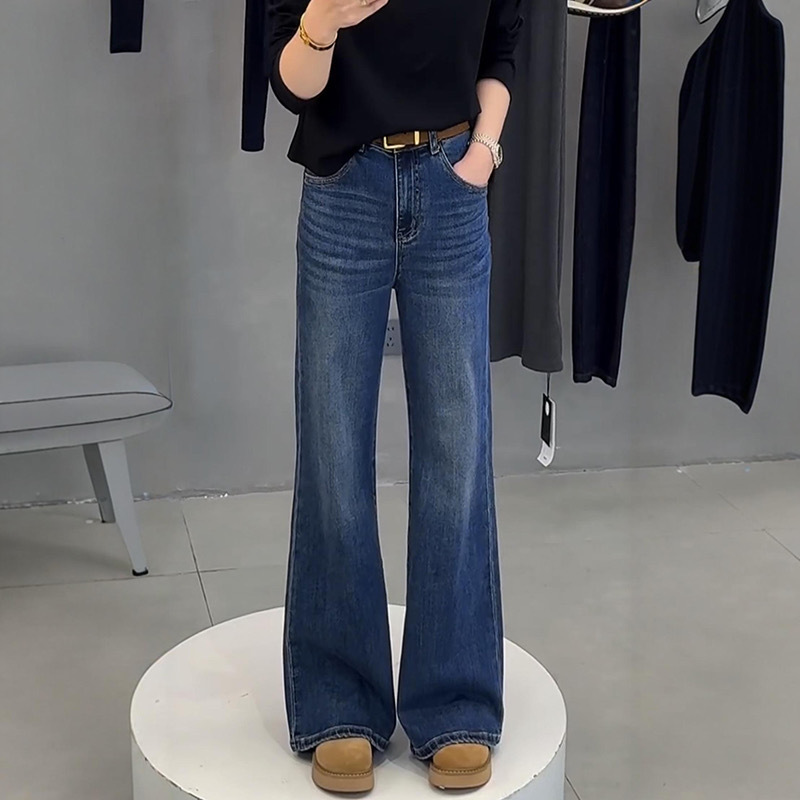 맥스 데이크스 ® 고탄성 슈퍼모델 플레어 팬츠 플러스 사이즈 하이웨이스트 레트로 스트레이트 청바지 뚱뚱한 mm가 엉덩이를 커버하고 슬림해 보입니다.스토어 가기