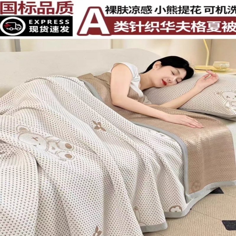 클래스 A 니트 코튼 어린이 퀼트 와플 여름 이불 쿨 느낌 콩 여름 이불 점심 휴식 다기능 에어컨 퀼트스토어 가기