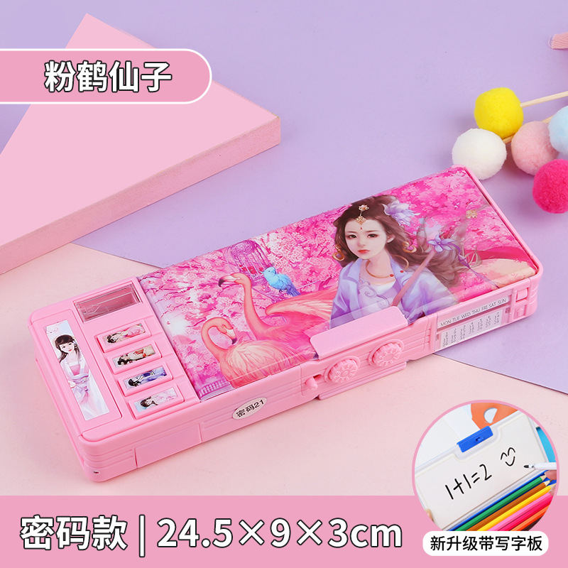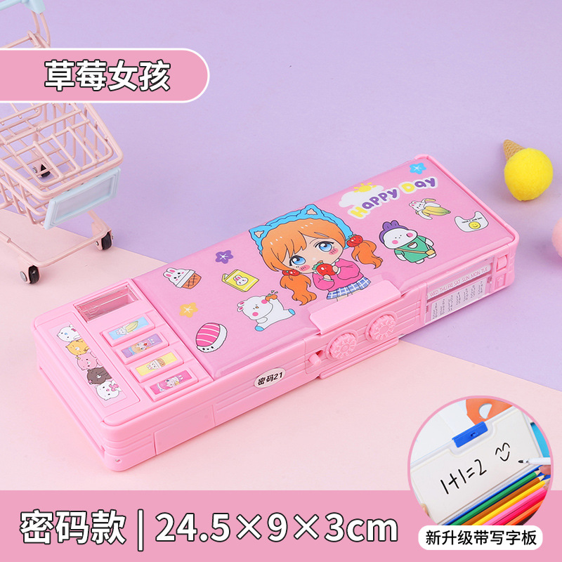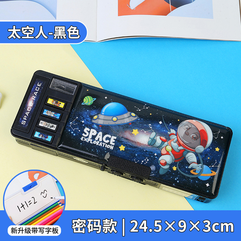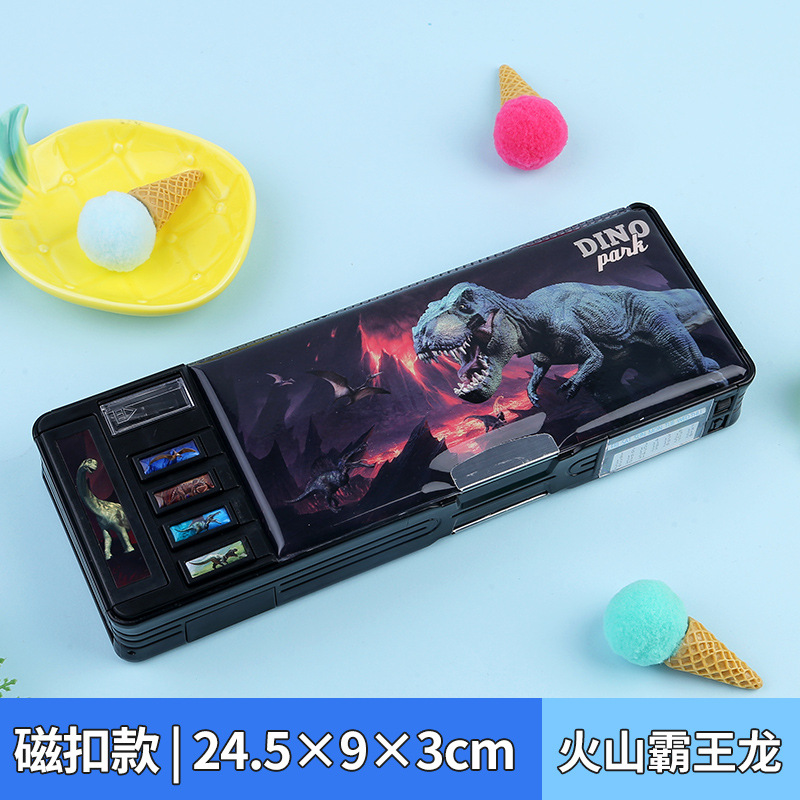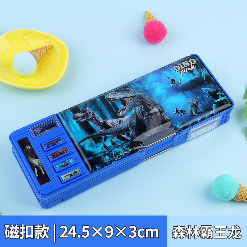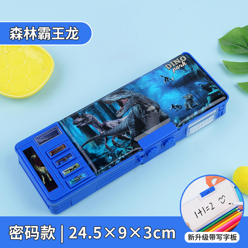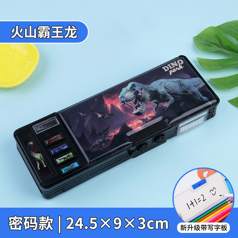 비밀번호 잠금 문구 상자 다기능 버튼 양면 대용량 필통 공룡 초등학교 소년 소녀 유치원
