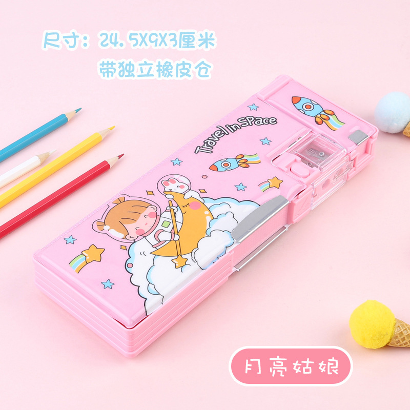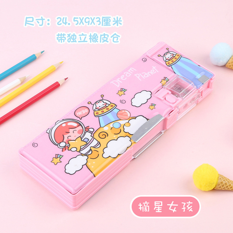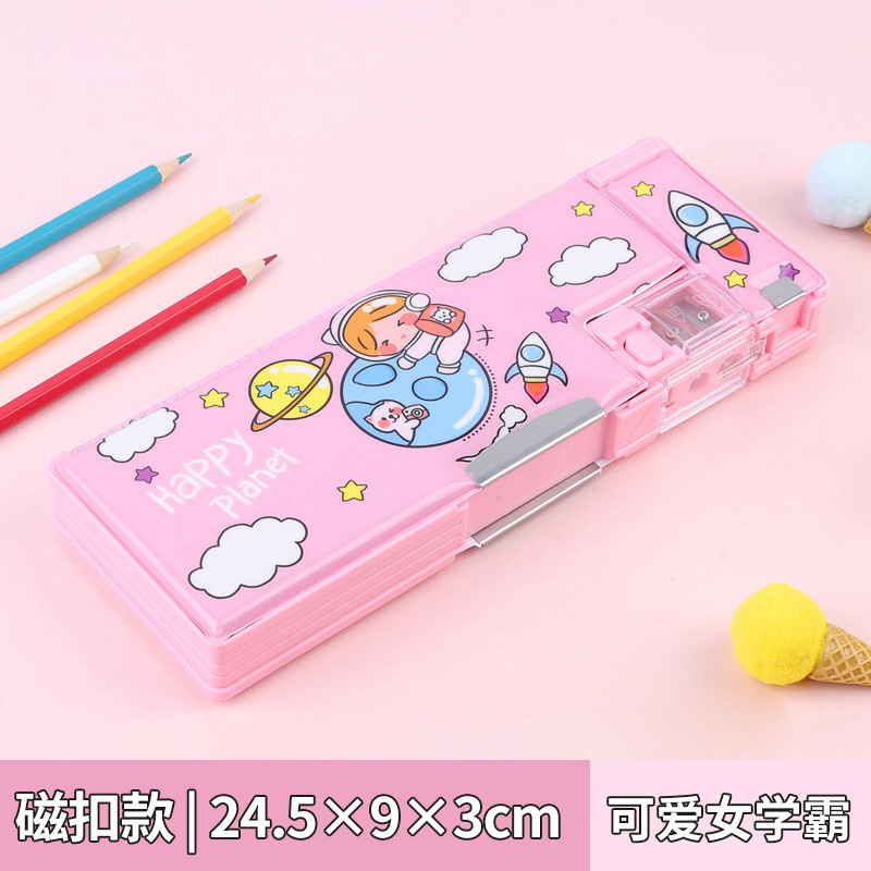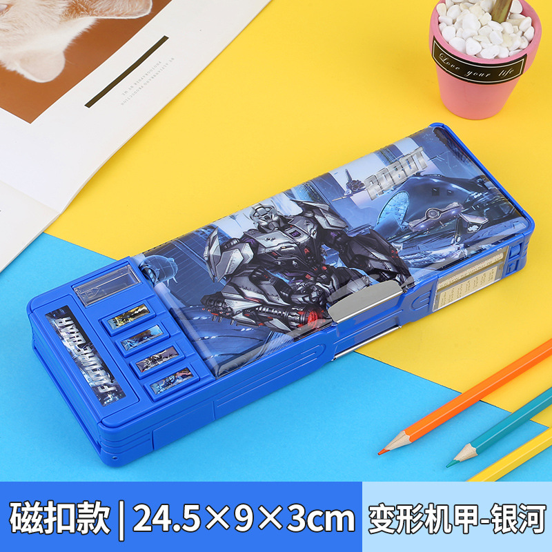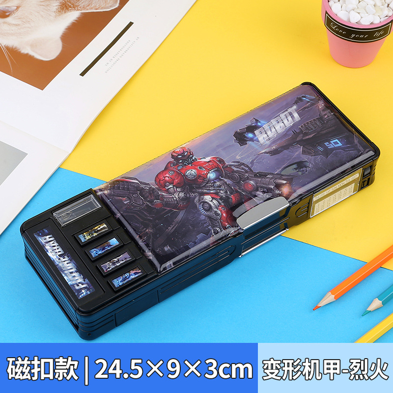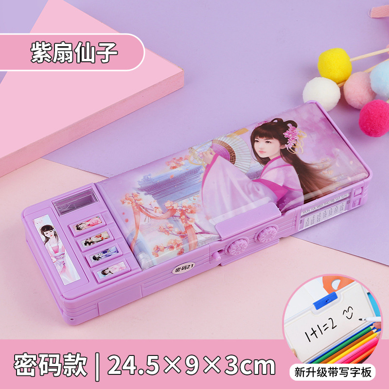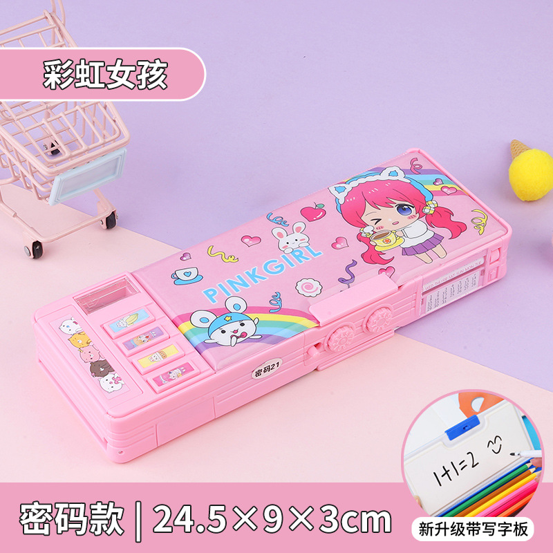 비밀번호 잠금 문구 상자 다기능 버튼 양면 대용량 필통 공룡 초등학교 소년 소녀 유치원
