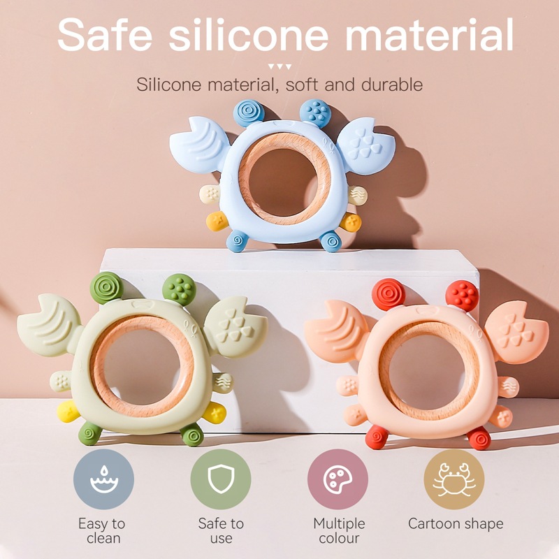 아마존 새로운 크랩 껌 입 기간 아기 Molar 먹는 손 실리콘 물린 음악 진정 딸랑이 재생