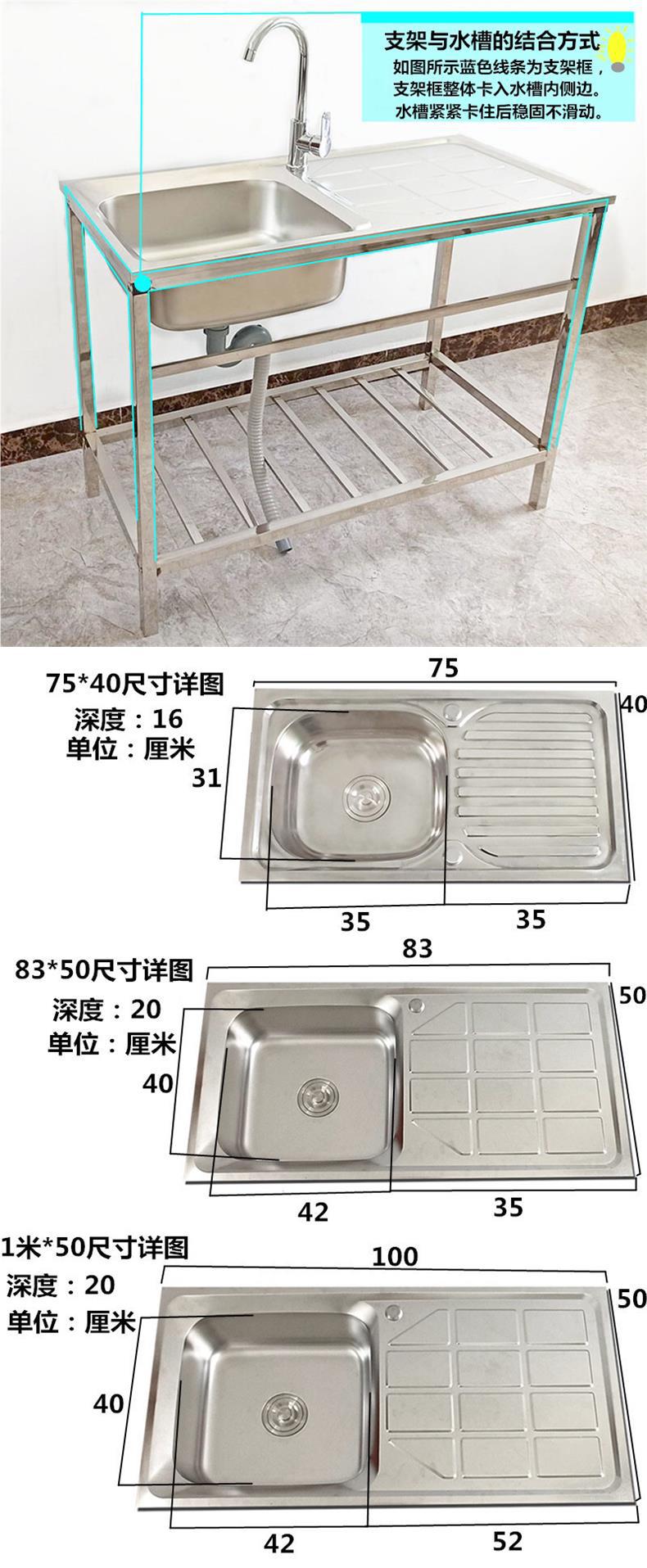 단일 싱크 싱크 싱크 싱크 싱크 싱크 싱크 싱크 싱크대 바닥부터 바닥까지 작업대 싱크대와 간단한 주방 스테인레스 스틸스토어 가기
