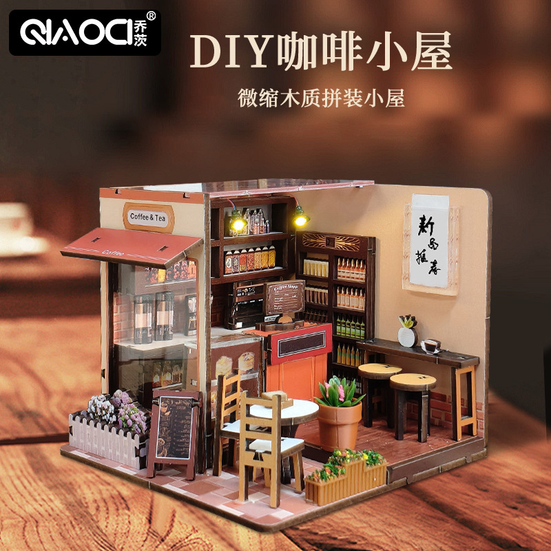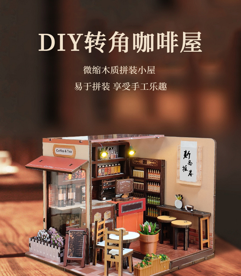 나무 수제 DIY 퍼즐 퍼즐 크리 에이 티브 3 차원 모델 캐빈 선물 선물 미니 장면 책 스탠드스토어 가기