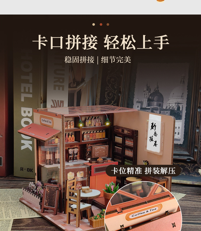나무 수제 DIY 퍼즐 퍼즐 크리 에이 티브 3 차원 모델 캐빈 선물 선물 미니 장면 책 스탠드