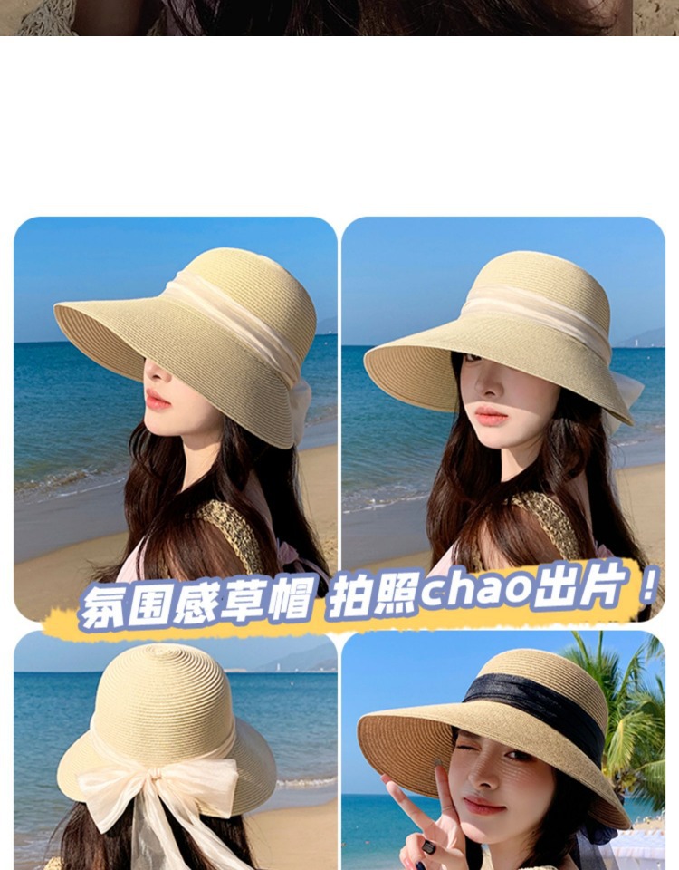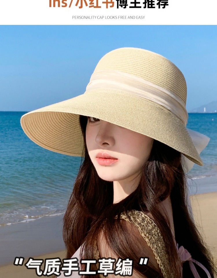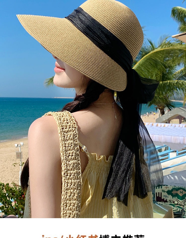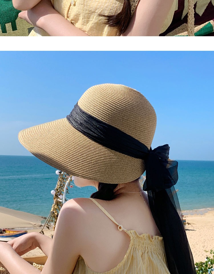 여성을위한 프랑스 가벼운 거즈 활 리본 복숭아 하트 밀짚 모자 여름 해변 휴가 해변 목가적 인 스타일 통기성 어부 모자스토어 가기
