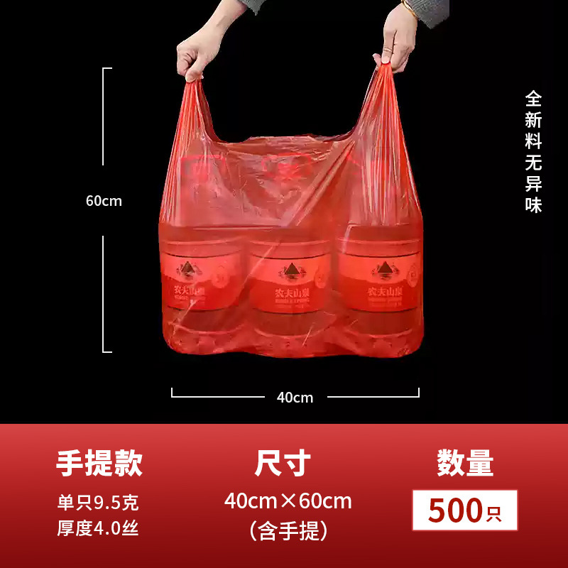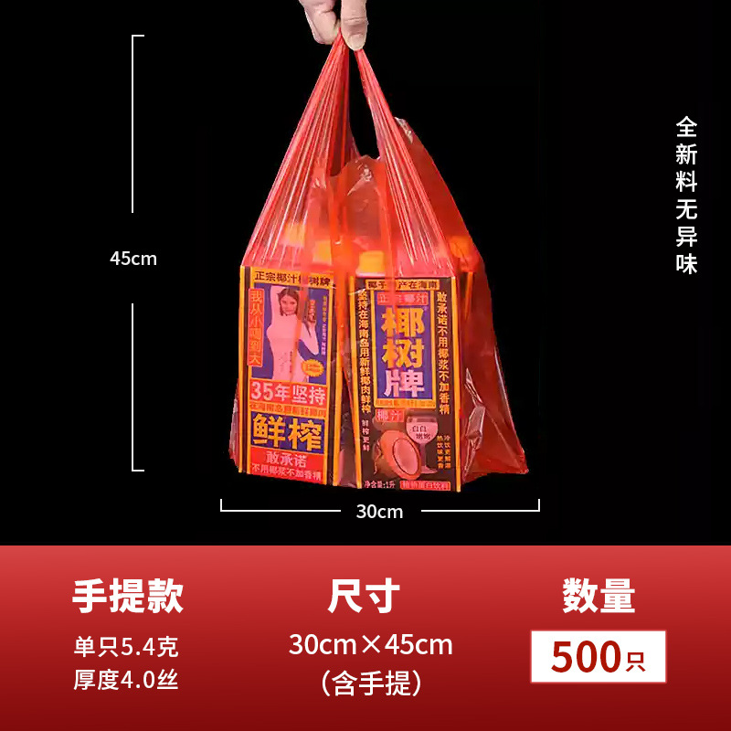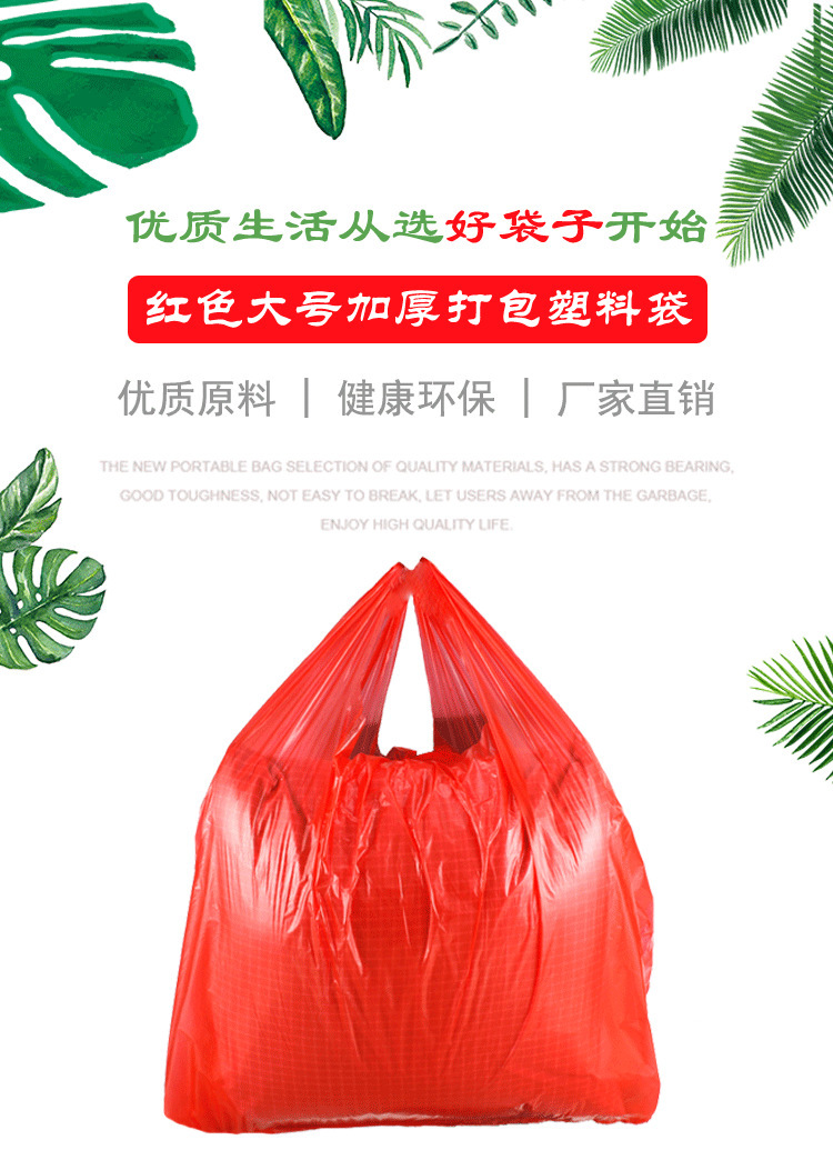 빨간색 휴대용 조끼형 가방 두꺼운 대형 상업용 슈퍼마켓 편의점 쇼핑 편리 가방 포장 비닐봉투 도매스토어 가기