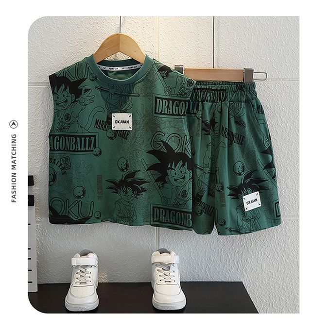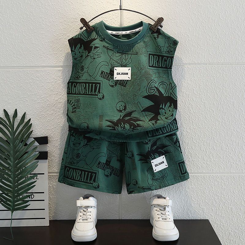 남학생 여름 옷 민소매 세트 2024 새로운 스타일 어린이 여름 옷 아기 얇은 조끼 투피스 유행 세트