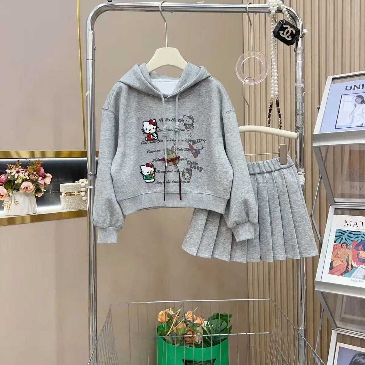 소녀의 봄과 가을 세트 새로운 여성의 큰 어린이 봄 스웨트 셔츠 캐주얼 주름 스커트 투피스 세트 소녀 스웨트 셔츠 트렌디스토어 가기
