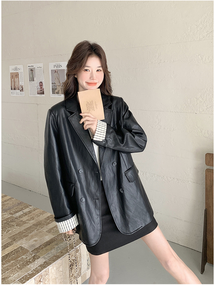 리얼 팻 PU 가죽 작은 세트 재킷 여성의 봄 2025 새로운 한국 스타일 프라이드 스트리트 패션 작은 올해 인기 세트스토어 가기
