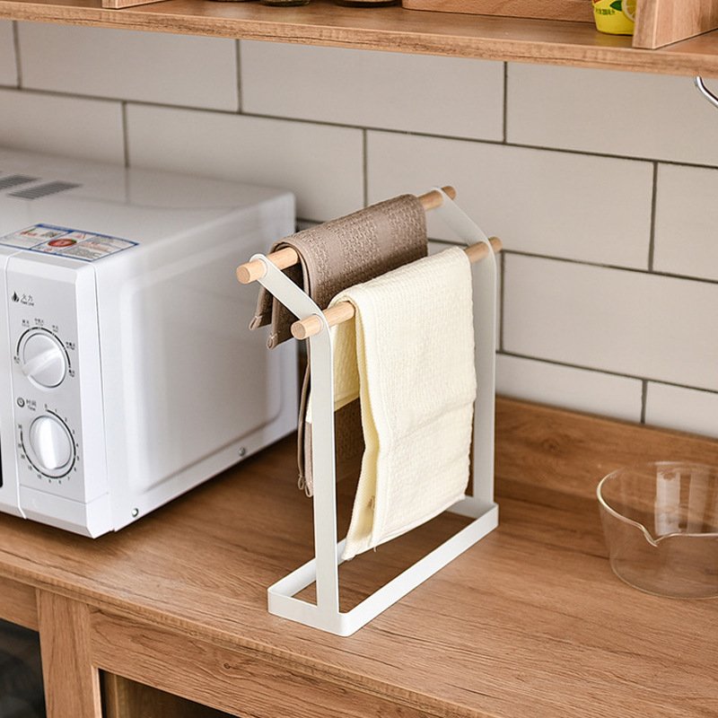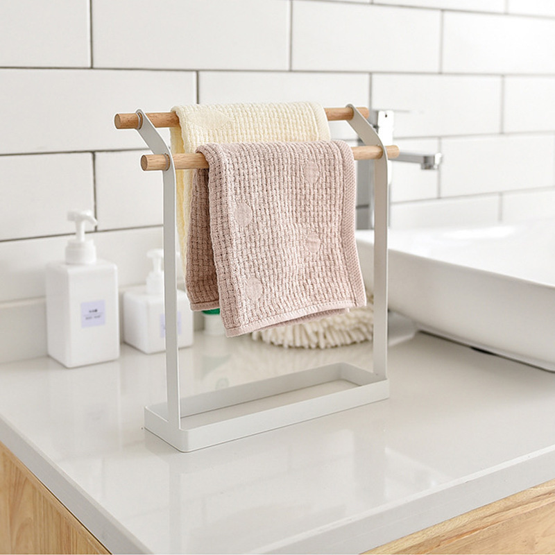 25 년 새로운 수건 랙 주방 비 천공 설치 데스크탑 철 이중 극 수건 랙 보관 랙